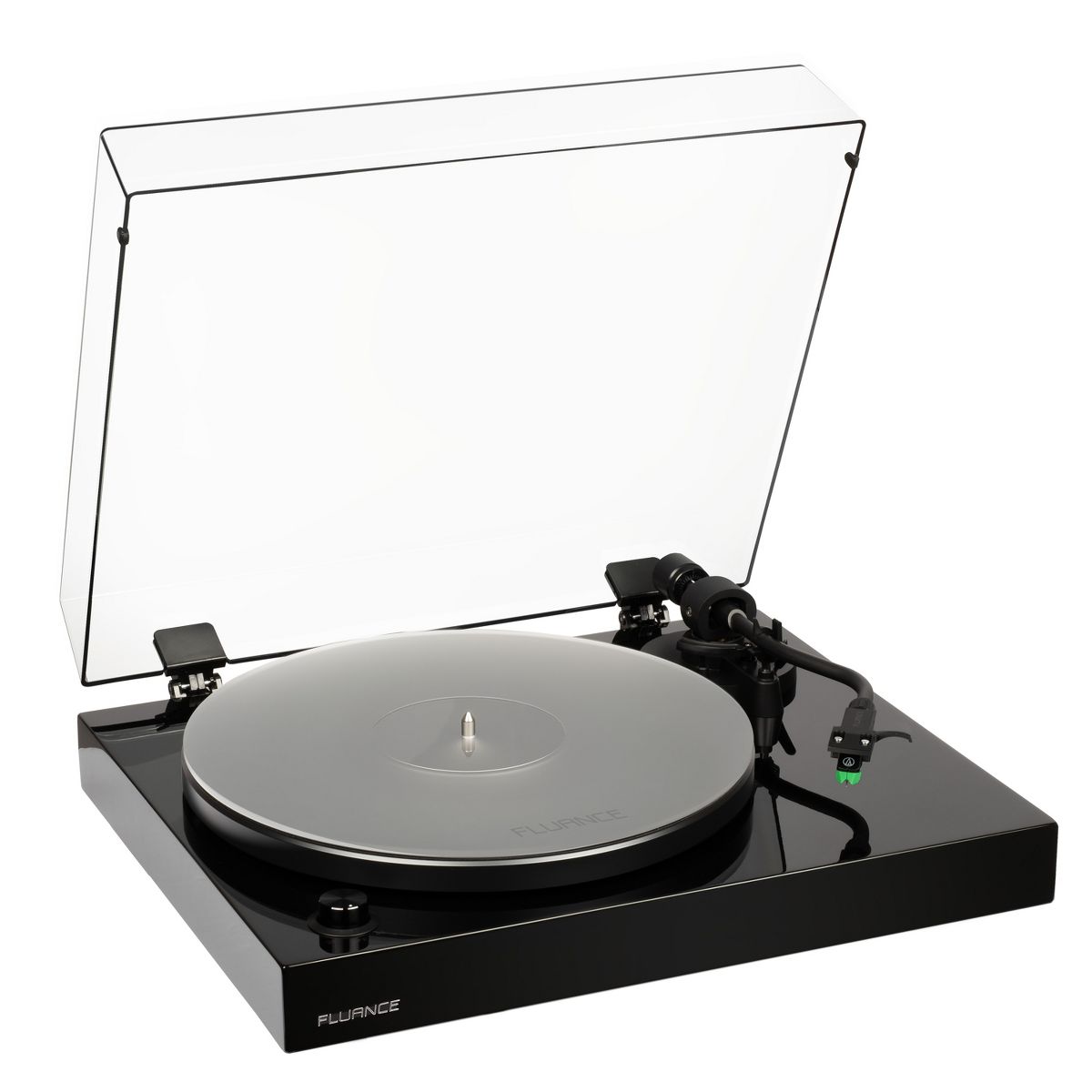 Fluance High Fidelity Vinyl Turntable Record Player, Audio Technica VM95E, Anti-Resonant Platter, Acrylic Mat, Preamp - Piano Black