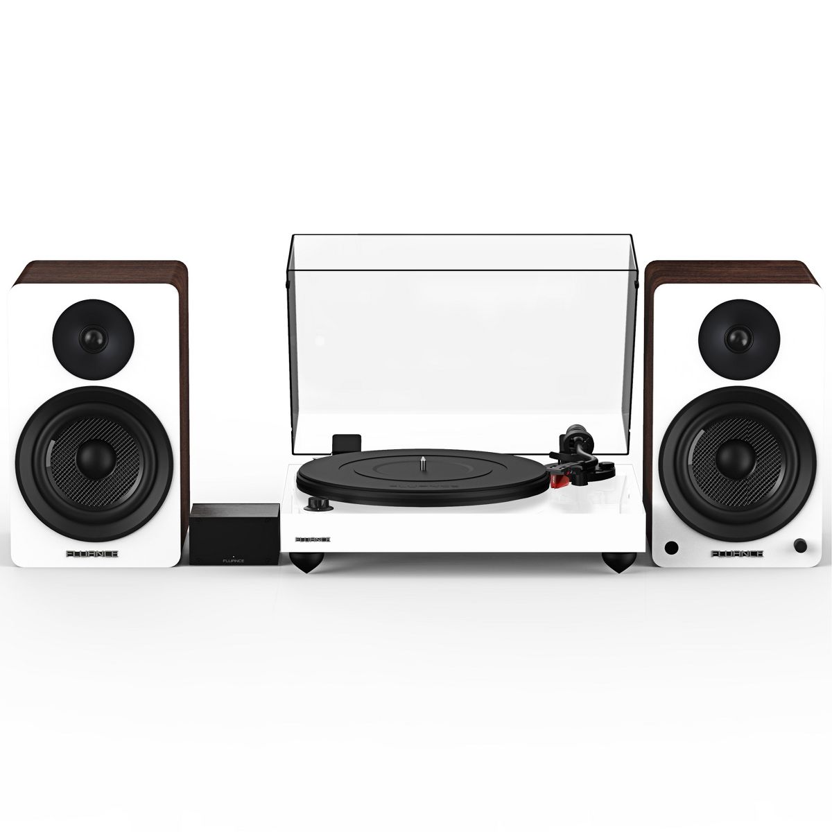Fluance RT83 Reference High Fidelity Vinyl Turntable, PA10 Phono Preamp and Ai61 Powered 6.5" Stereo Bookshelf Speakers - White / White Walnut