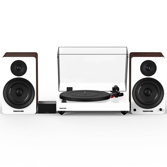 This plug and play system easily connects your turntable to the speakers without the need for a separate amplifier or AV receiver.