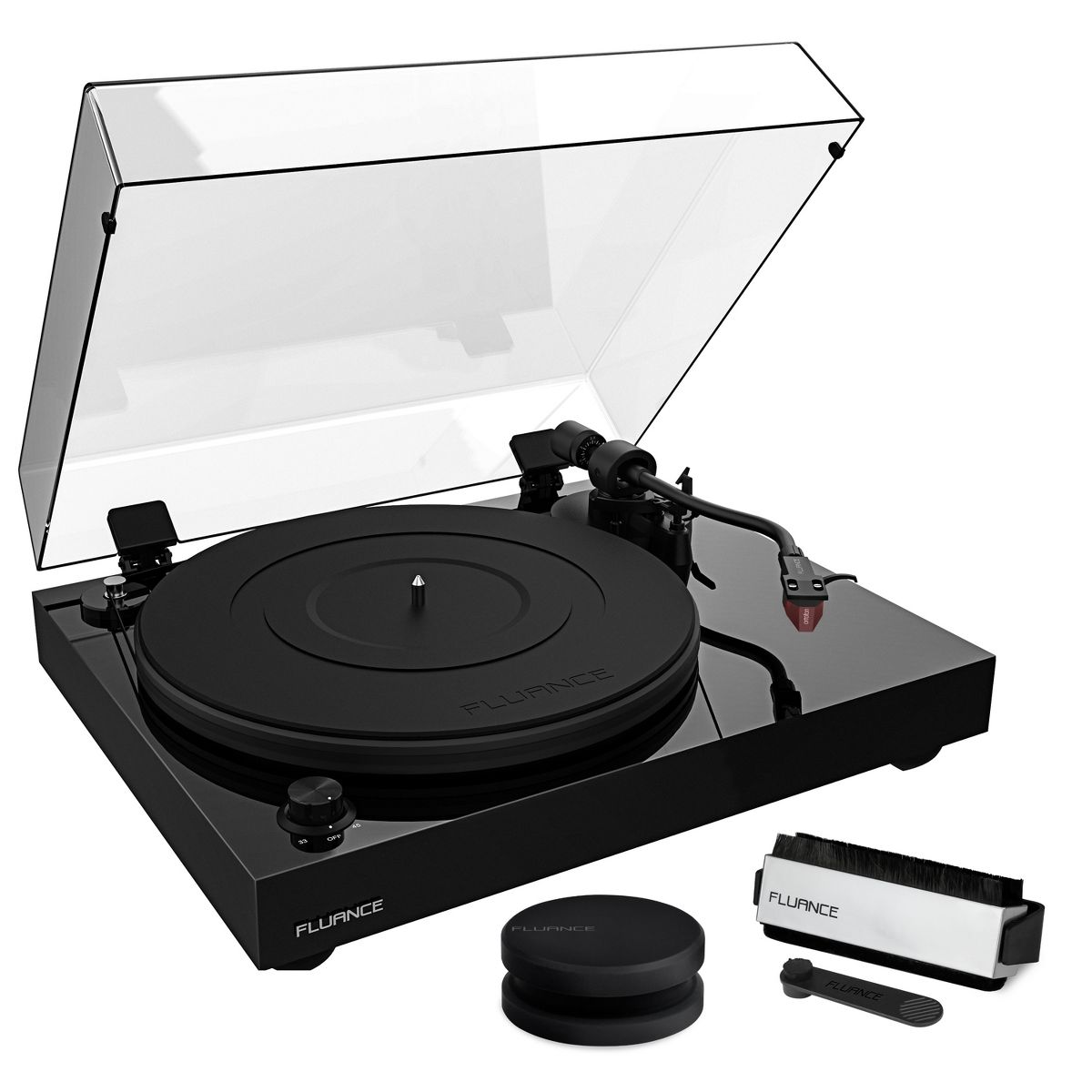 Experience unparalleled vinyl music playback with the Fluance Reference Hifi Turntable and Accessory Kit. Maintain perfect sound reproduction and establish closer contact between your record and the turntable platter with the Record Weight reducing resonance and undesired vibrations while extending the life of your records and turntable stylus with the Vinyl Cleaning Kit.