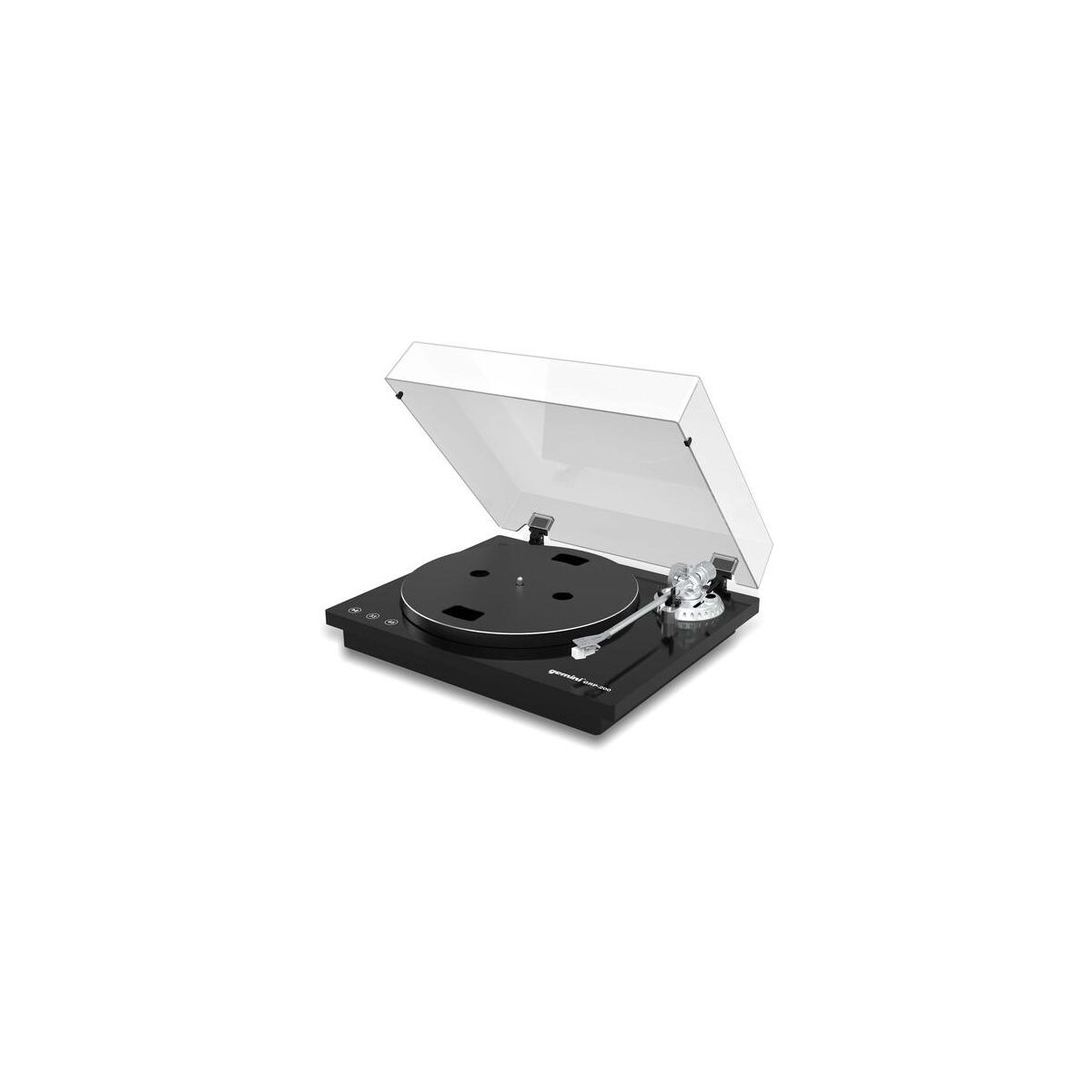 The belt-drive motor offers 33 and 45 RPM speed options. Touch sensitive buttons allow you to press play and select speeds with ease. A statically balanced tonearm features a hydraulic lift and an anti-skate mechanism. A Gemini HDCN-15 headshell/cartridge with Audio Technica elliptical stylus is included.