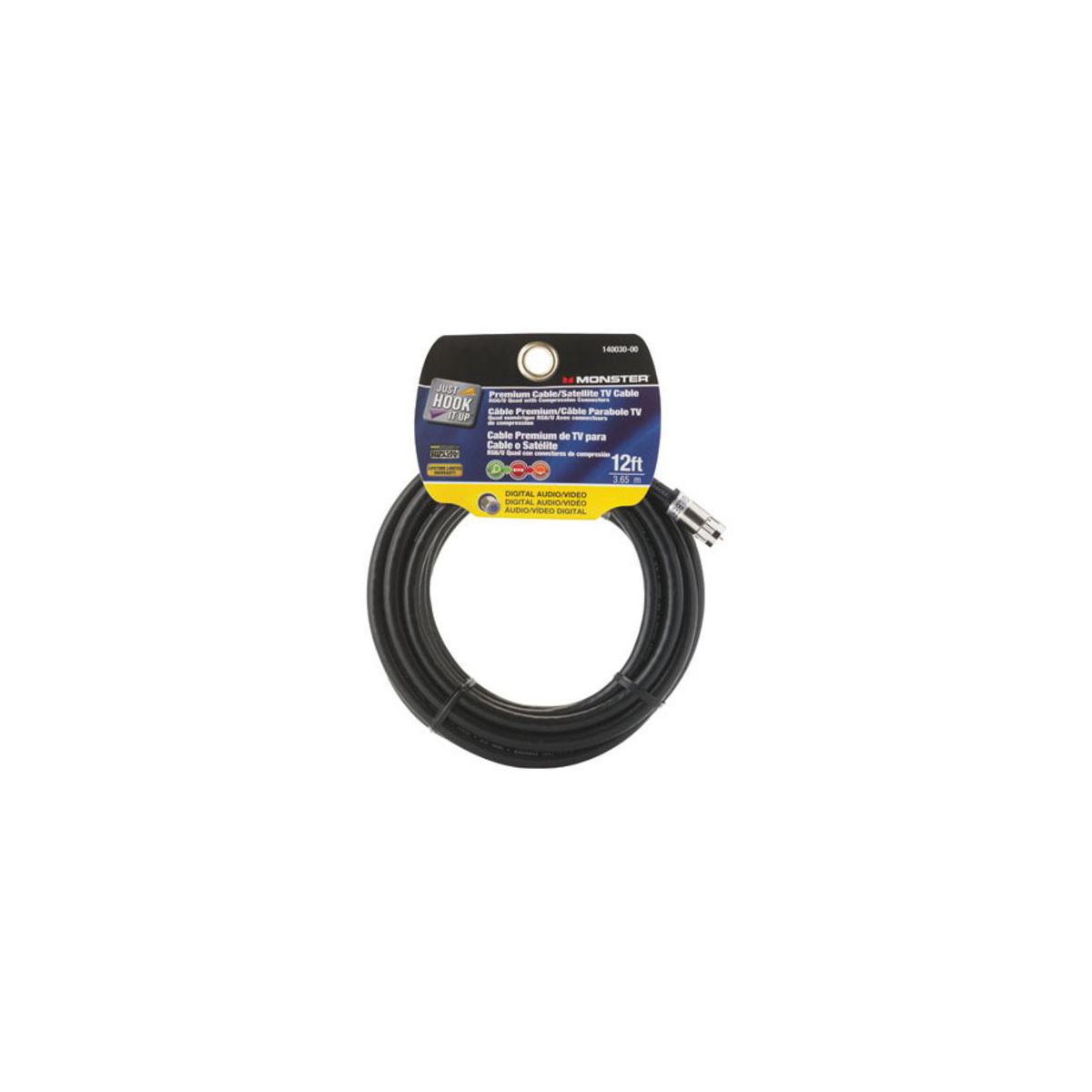 Monster 140030-00 RG6 Video Coaxial Cable, 12', Black
