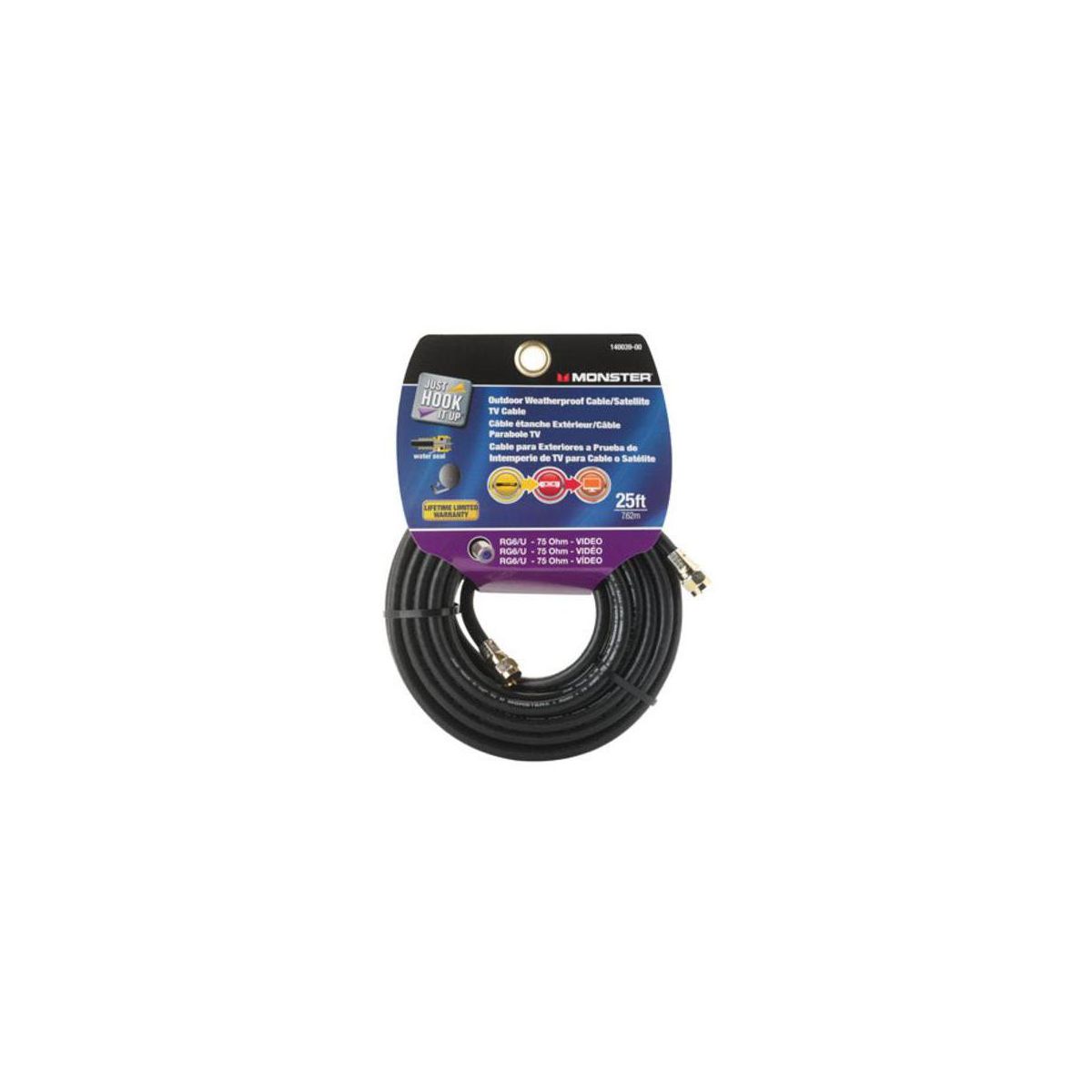 Monster 140039-00 Weatherproof RG6 Video Coaxial Cable, 25'