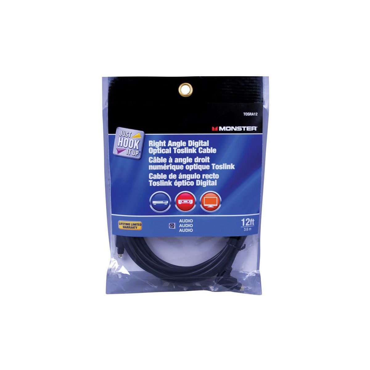 Monster JHIU0026 Just Hook It Up Digital Optical Toslink Cable, 12' Long