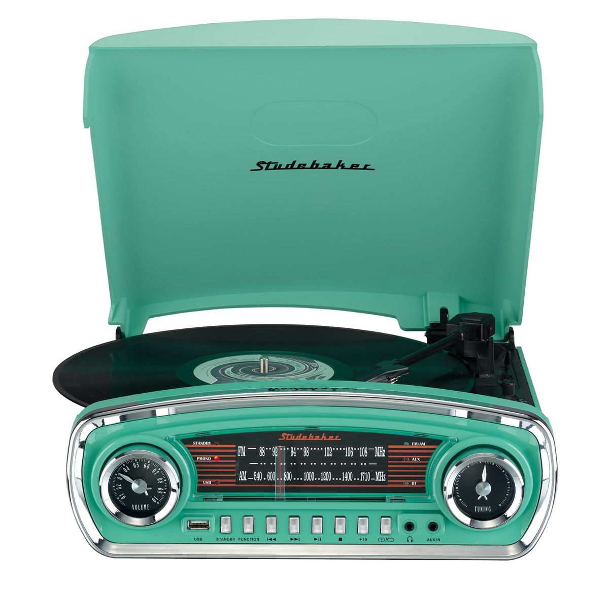Studebaker 3-Speed Pitch Control Turntable with Bluetooth Receiver and Radio - Black (SB6057B): USB & AM/FM Speaker System