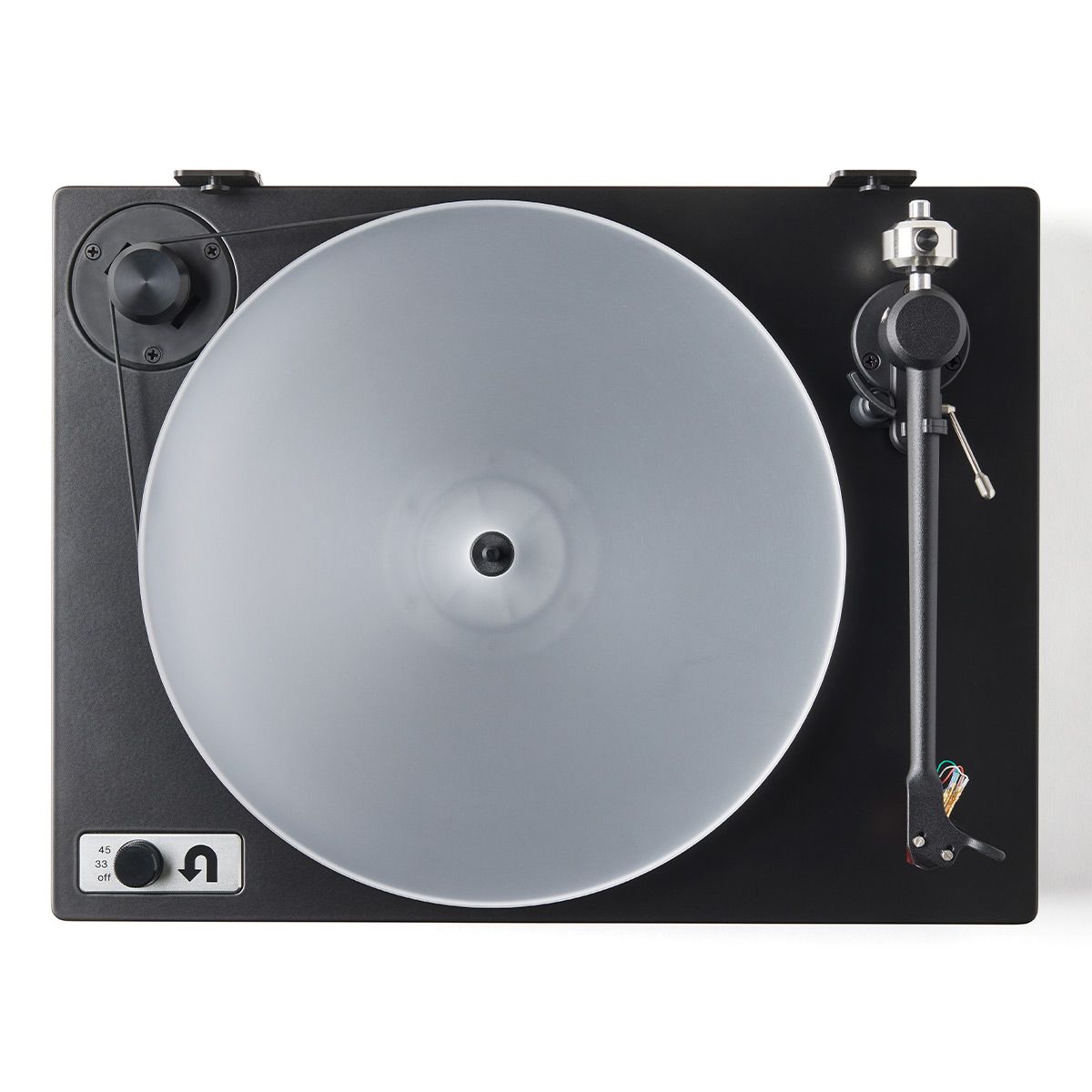 Advanced Electronic Speed ControlChange speeds with the turn of a knob. U-Turn’s advanced motor controller ensures pinpoint speed accuracy by using a sine wave generator that monitors and adjusts speed thousands of times per second. Orbit's signature belt drive and rubber motor suspension prevent unwanted vibrations from reaching the platter.