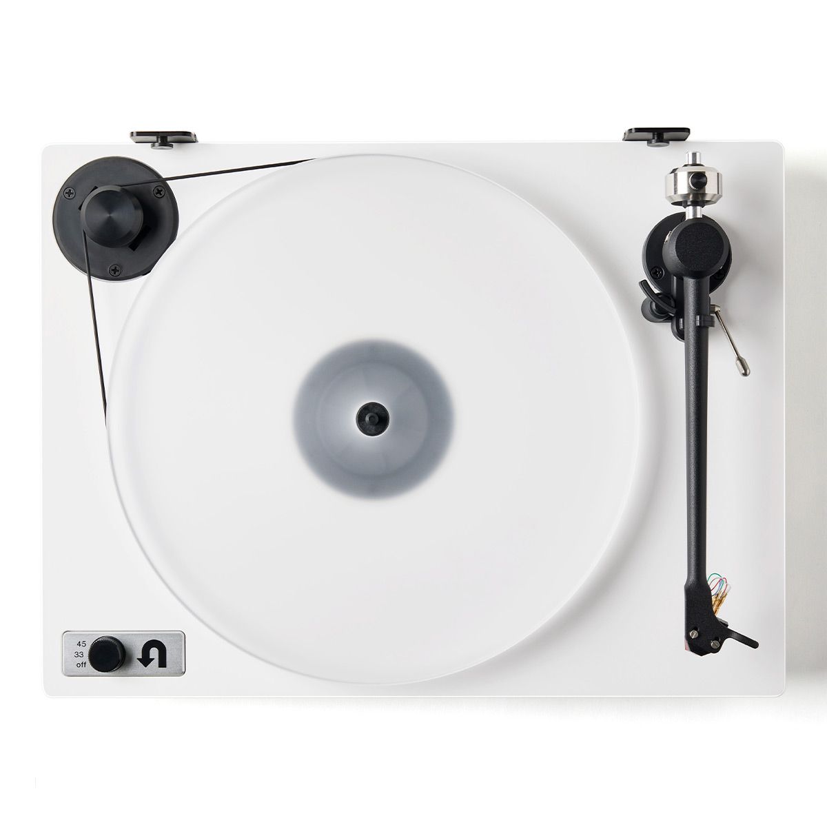Advanced Electronic Speed ControlChange speeds with the turn of a knob. U-Turn’s advanced motor controller ensures pinpoint speed accuracy by using a sine wave generator that monitors and adjusts speed thousands of times per second. Orbit's signature belt drive and rubber motor suspension prevent unwanted vibrations from reaching the platter.
