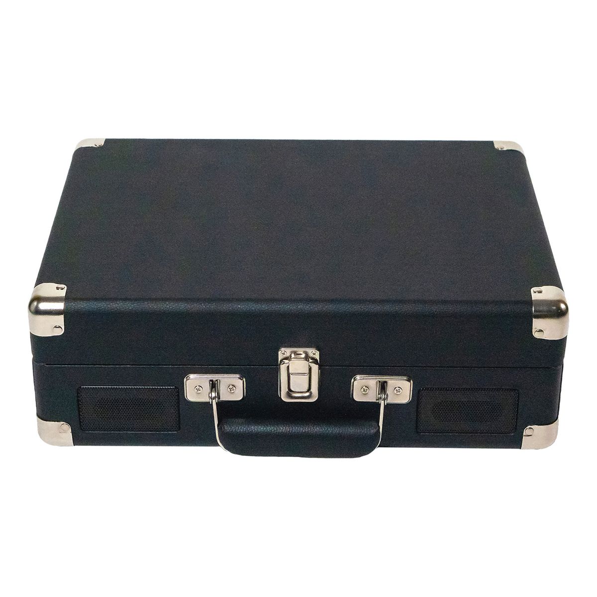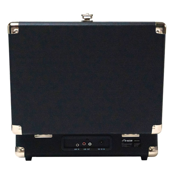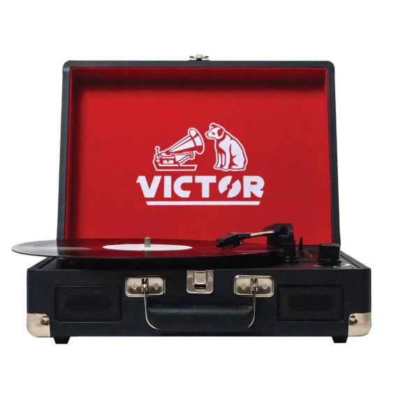 Victor® 2-Watt Metro 3-Speed Belt-Drive Manual Suitcase Turntable with Built-in Speakers, Bluetooth® In/Out, Aux In, and 45-RPM Adapter (Black)