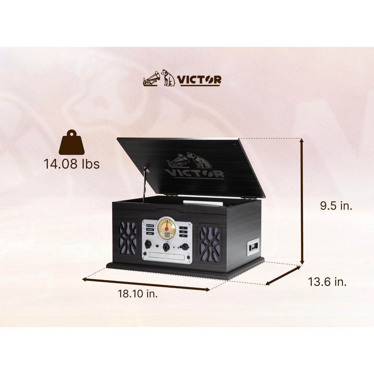 Victor State 7-in-1 Mahogany Wood Music Center is loaded with features at an attractive price point. The 3 Speed turntable stands ready to play your favorite vinyl. The Dual Bluetooth model allows streaming of your music to an external speaker. Includes a cassette & CD Player, built in Speakers, and FM Radio.