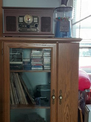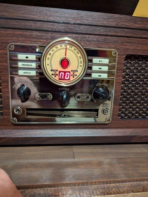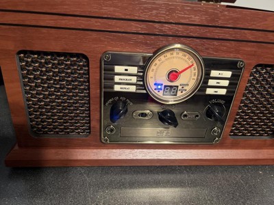 The Victrola Classic Bluetooth Record Player is an all-in-one music powerhouse. The Classic brings vintage style into the modern day, with a nostalgic design and an FM radio with old-school rotary dial. Play all your favorite vinyl records using the 3-speed, belt driven turntable, or stream from your smart device using Bluetooth connectivity. Built-in CD and cassette players allow you to rediscover old favorites, while the stereo speakers deliver powerful sound with pristine clarity at any volume. Antique-style faceplate and smart, wood details make the Classic a perfect fit in any listening space, so you can make lifelong music memories with the tunes you love the most