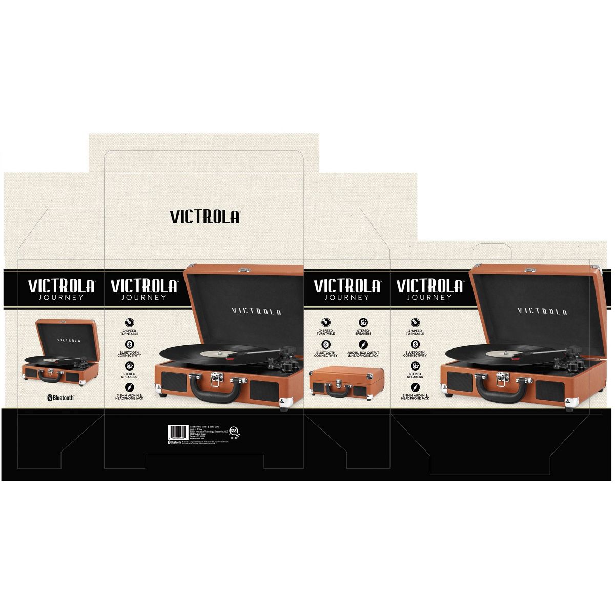 Victrola Journey 3-Speed Bluetooth Suitcase Record Player - Cognac: Belt Drive, Built-In Stereo Speakers