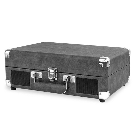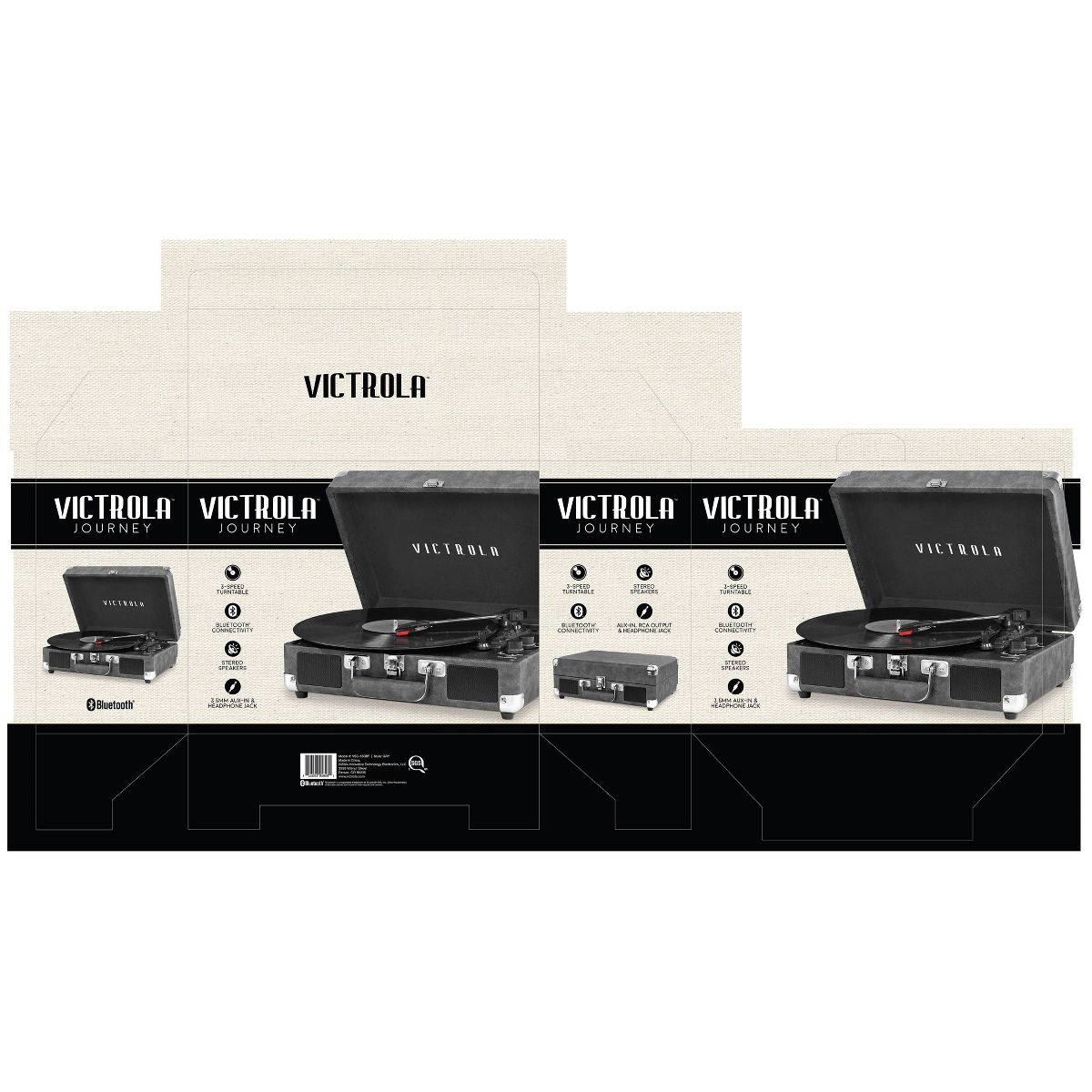 Victrola Journey 3-Speed Bluetooth Suitcase Record Player - Gray: Belt Drive, Built-In Speakers