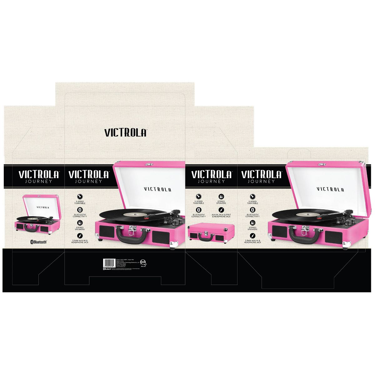 Victrola Journey 3-Speed Bluetooth Suitcase Record Player - Pink: Belt Drive, Built-In Speaker