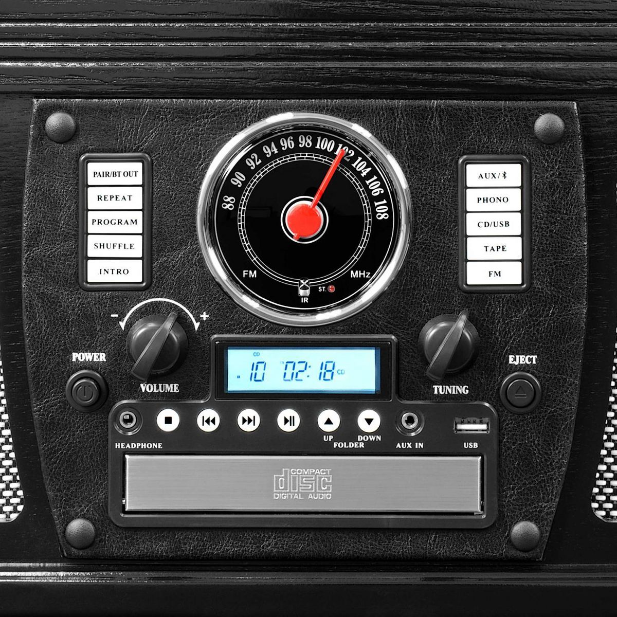 The Victrola Navigator Record Player combines modern technology with classic design. The Navigator features a 3-speed turntable, designed to play all your favorite 33 1/3, 45, and 78 RPM records! Listen to your favorite CDs and tapes with built-in cassette and CD players, or tune into your favorite station with the FM radio. Bluetooth connectivity also allows you to stream music from your smart device through the Navigator's built-in stereo speakers. Real wood construction means that the Navigator is built to last, creating music memories for years to come.