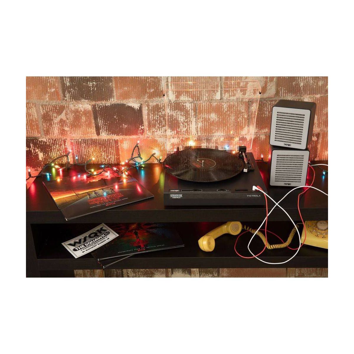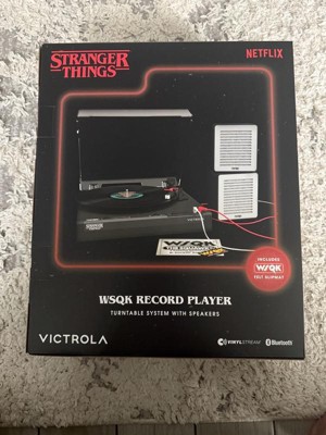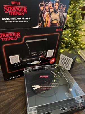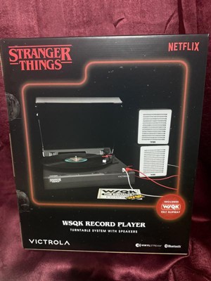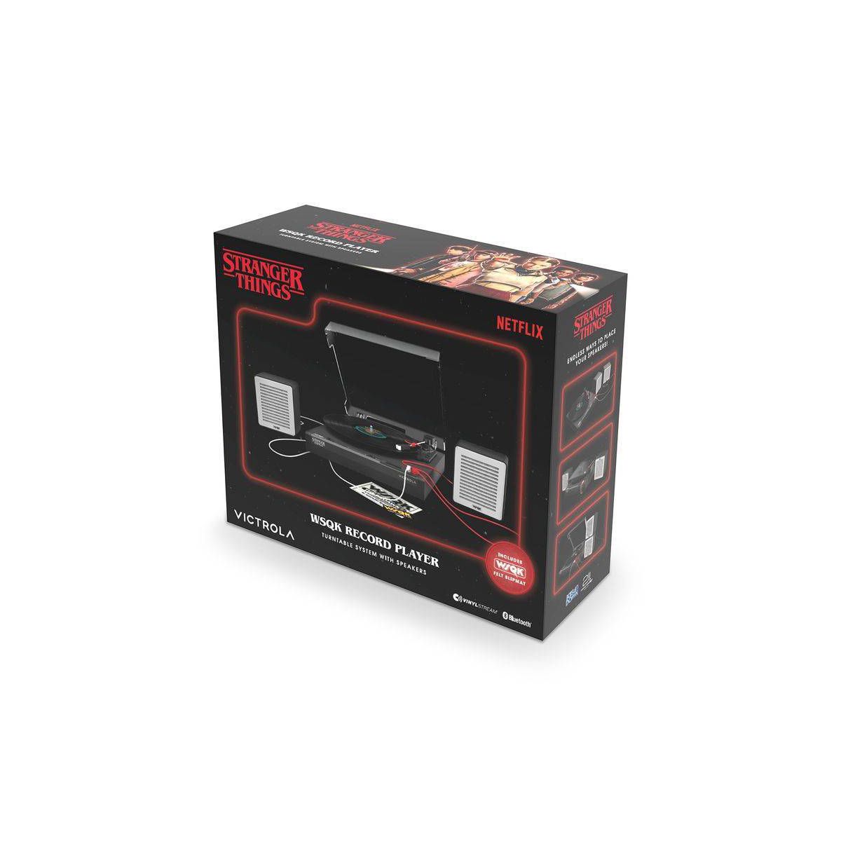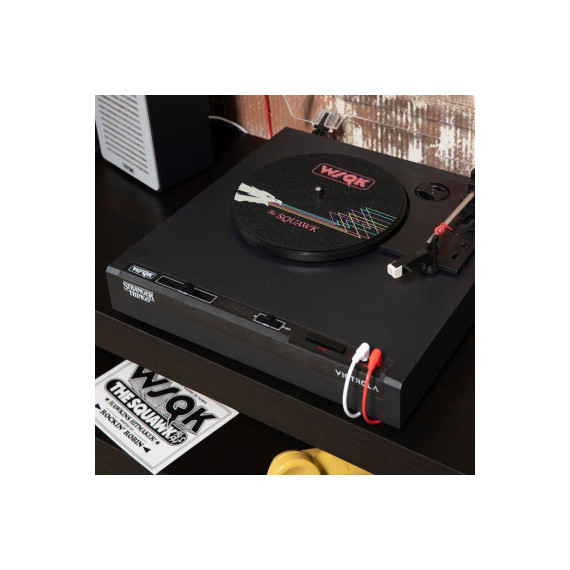 Celebrate the final chapter of Stranger Things with the Victrola WSQK Record Player. This limited-edition turntable features a custom WSQK felt slipmat and wired speakers designed to echo the chaotic energy of the WSQK control room. Place your speakers however you like, there are no rules here. Stack them, stagger them, or even flip them...Upside Down!