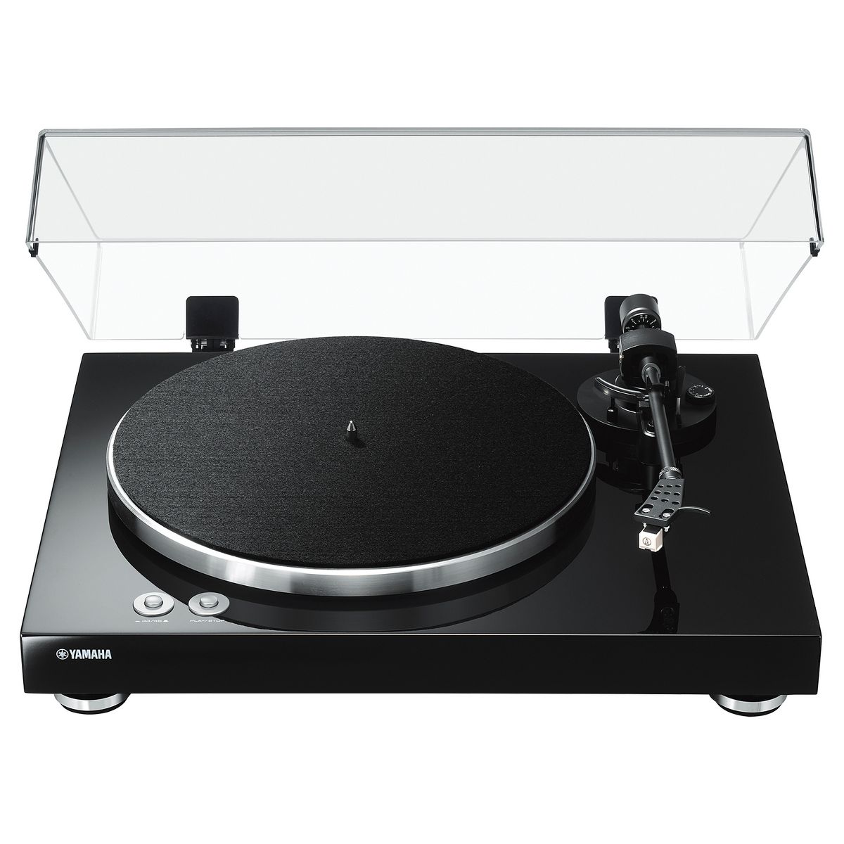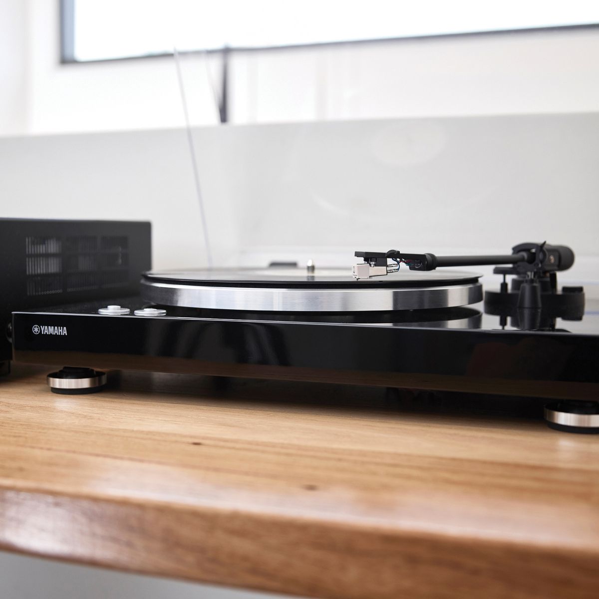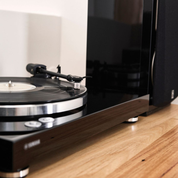 Create a listening experience with the Yamaha TT-S303 2-Speed Turntable. Yamaha's Hi-Fi heritage combine with a sleek, minimalist aesthetic so you can hear every detail in your vinyl collection while elevating your Hi-Fi setup. Combine it with other Yamaha Hi-Fi components (sold separately) such as MusicCast for exceptional sound and streaming capabilities. Experts in sound, Yamaha boasts an enviable back-catalog of Hi-Fi products that have shaped the way we listen to music. Some have gone on to achieve iconic and even legendary status in Hi-Fi circles, touted for their quality, innovation, and trademark Yamaha sound. Each component of the TT-S303 was carefully chosen to contribute to rich, uncompressed reproduction. Enjoy superior sound thanks to the belt drive, which reduces vibration. The straight tonearm is made for stable tracking, and an external DC power supply cuts electronic interference. The result is unadulterated sound.