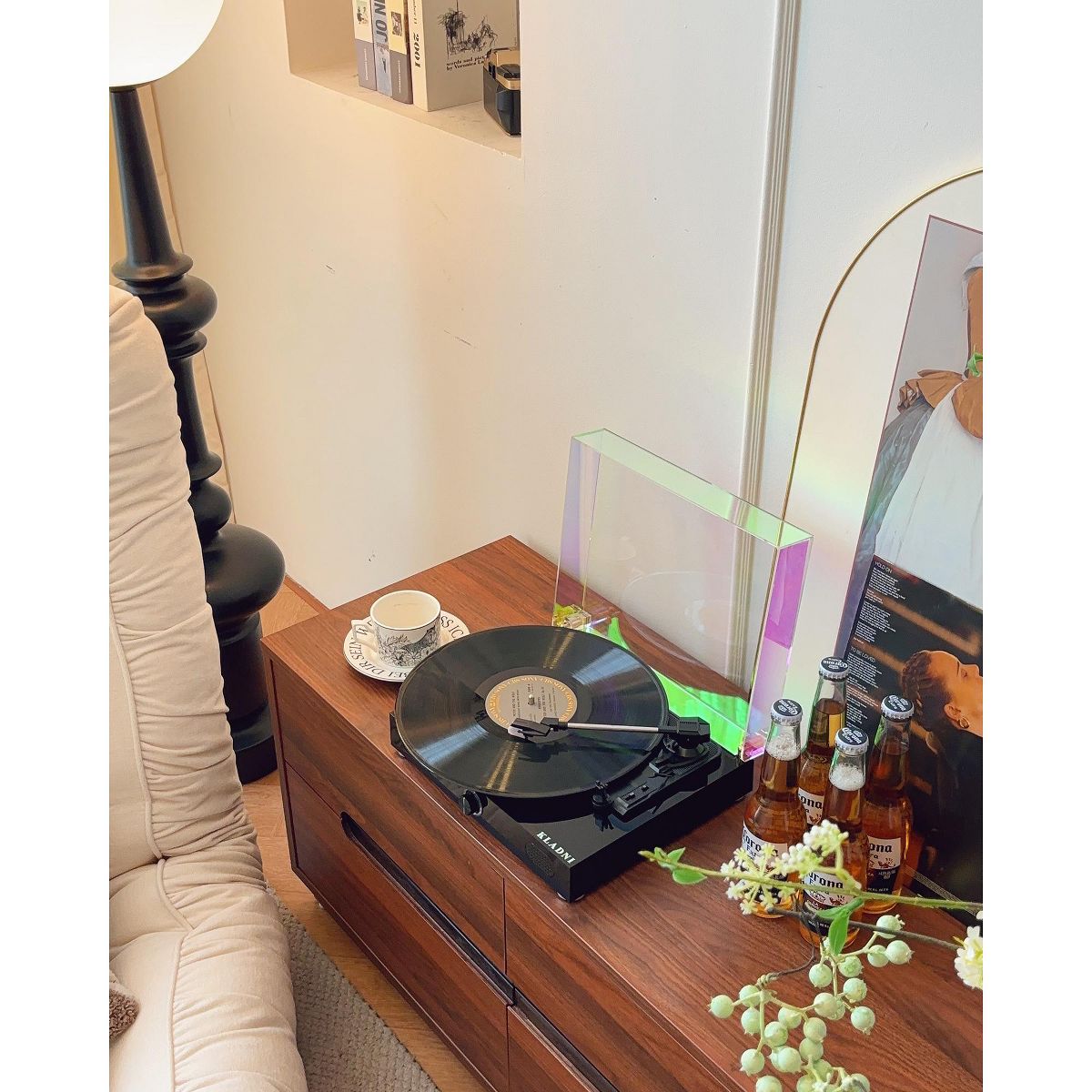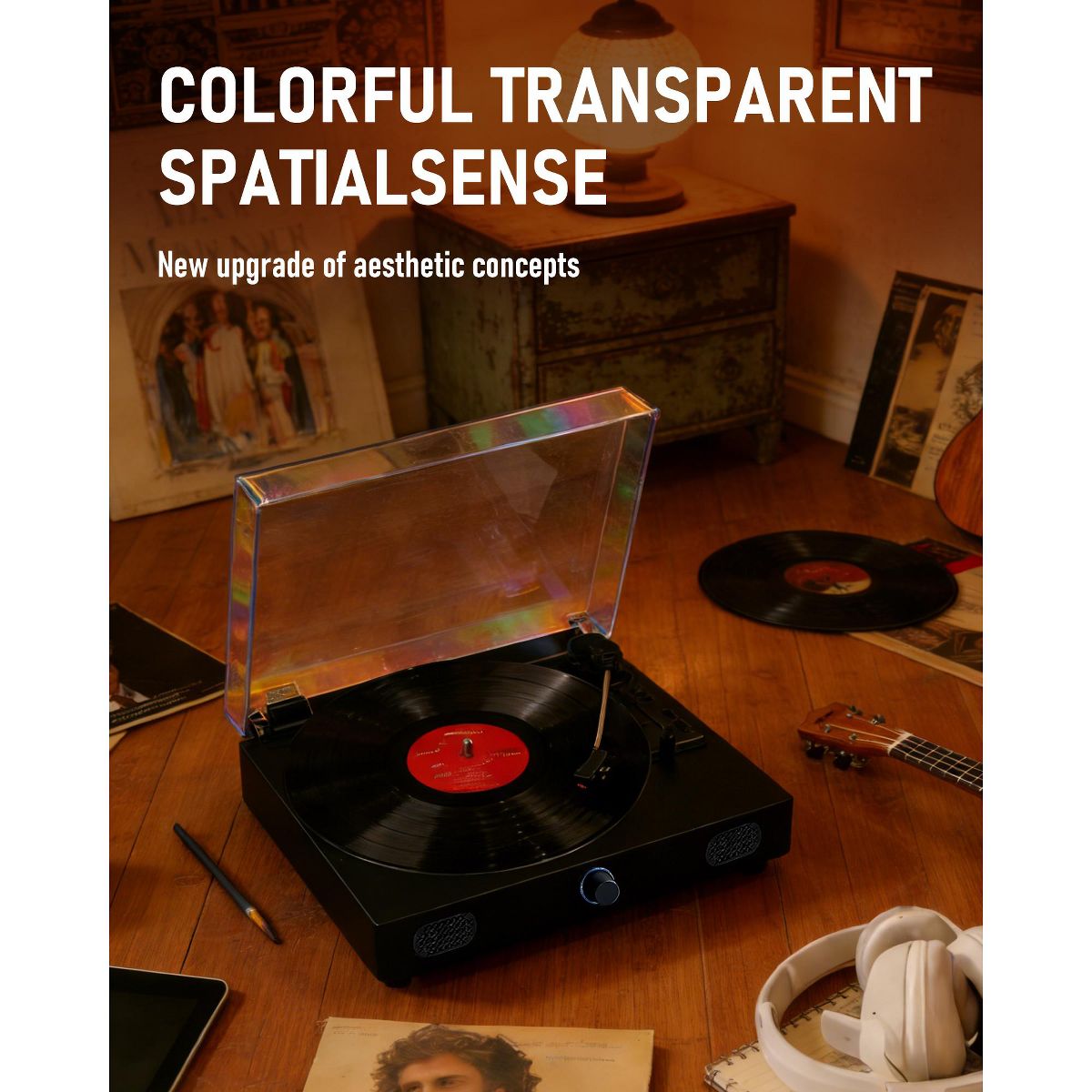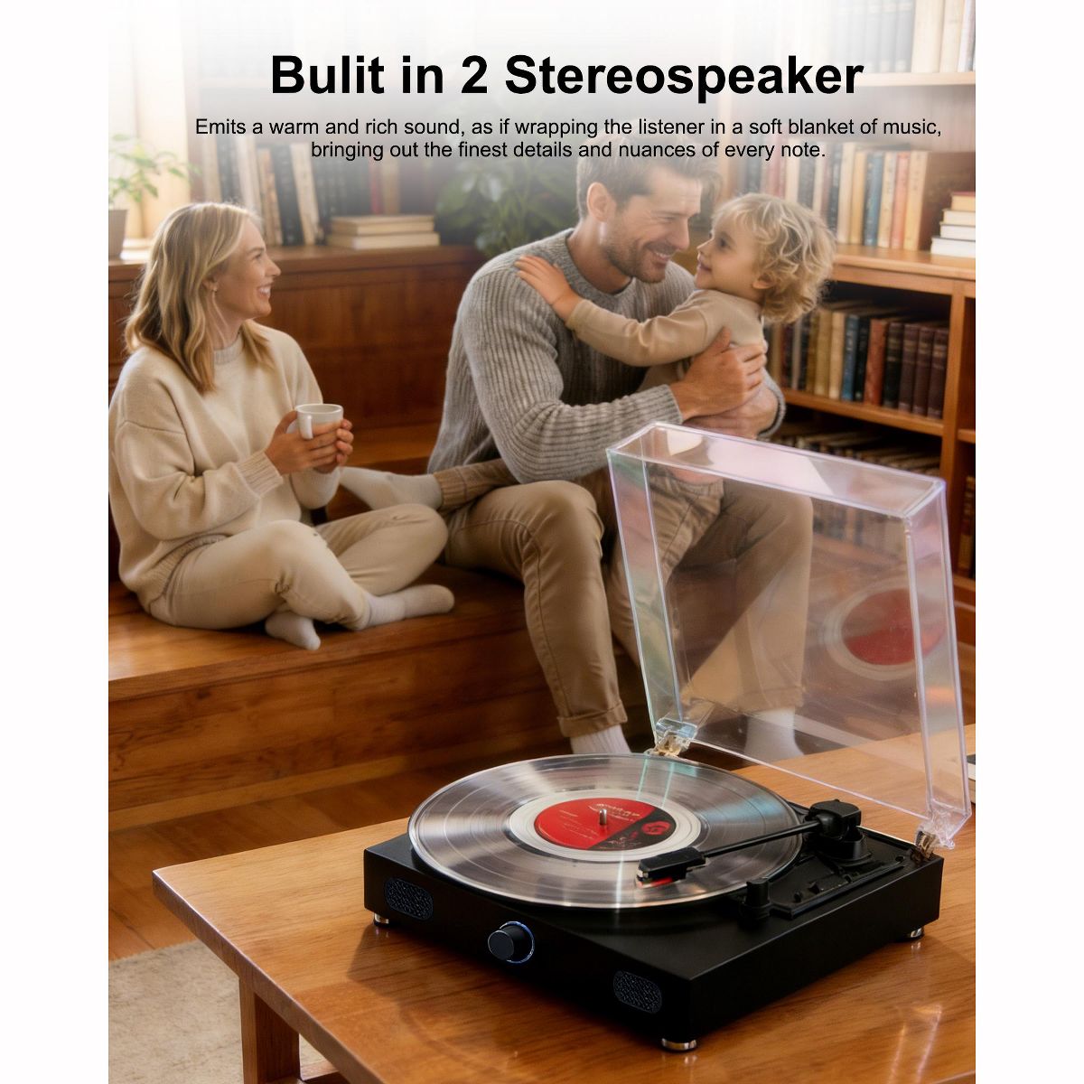 This record player features a clean, modern design that blends classic style with everyday functionality. The sleek white finish and dust cover add a decorative touch while fitting easily into bedrooms, living rooms, or home offices. Designed with a 3-speed belt-drive system, it supports multiple playback speeds and disc sizes for flexible listening. Built-in Bluetooth connectivity allows you to stream music from compatible devices or play audio through external Bluetooth speakers. With custom-tuned stereo speakers built in, this record player offers an all-in-one listening solution with no additional equipment required. Both functional and stylish, it serves as a music player and a home decor accent.