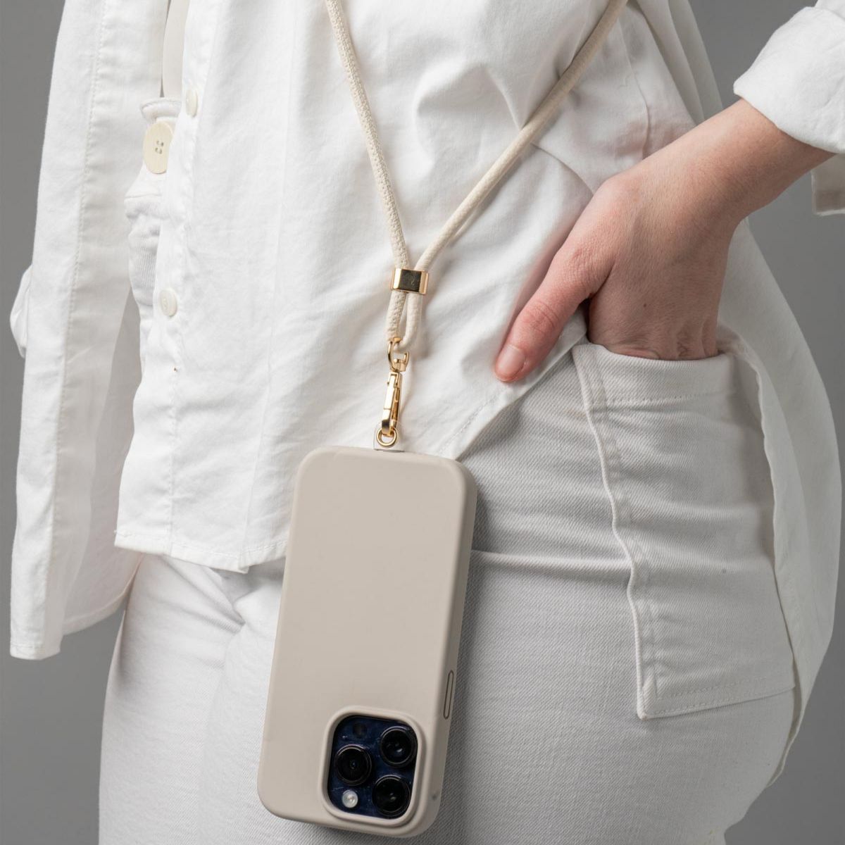 Kedzie Vegan Leather Universal Smartphone Lanyard Bone