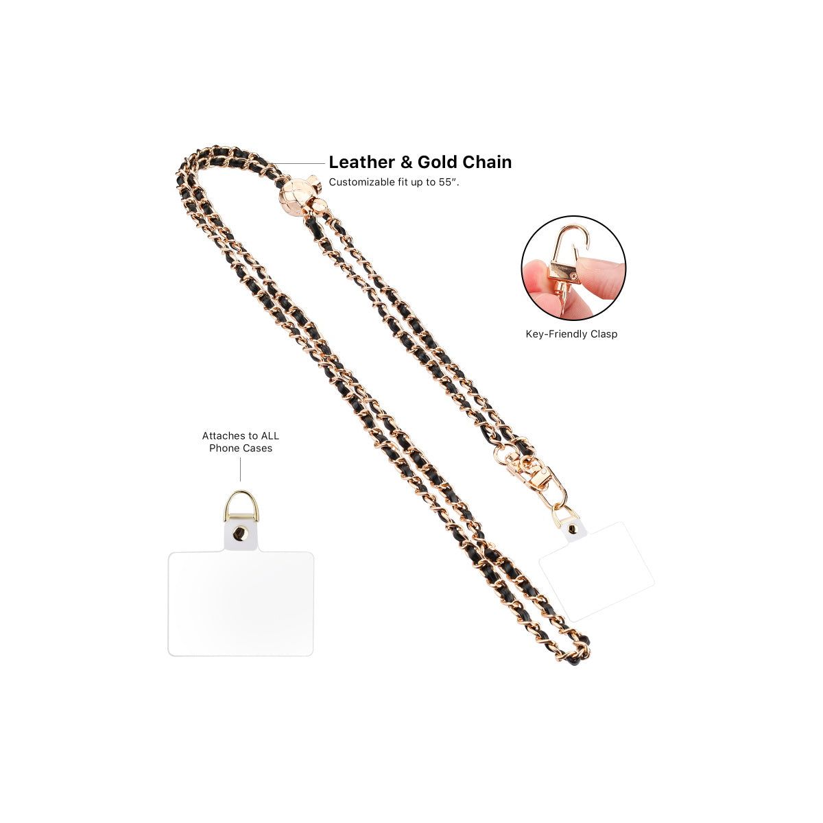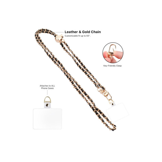 Luxury that goes wherever you go. The MyBat Gilded Ivory Adorn Series Adjustable Chain Crossbody Strap is the perfect blend of elegance and functionality. Designed for those who value both style and practicality, this adjustable phone strap features a luxurious leather finish with a polished gold chain, offering a universal fit for any phone case. With an adjustable 55-inch length, it provides a comfortable crossbody or shoulder fit, keeping your device secure with its fall-proof design. The gold-tone accents and key-friendly clasp allow for easy attachment of keys, charms, or accessories, making it a must-have phone accessory for anyone on the go.