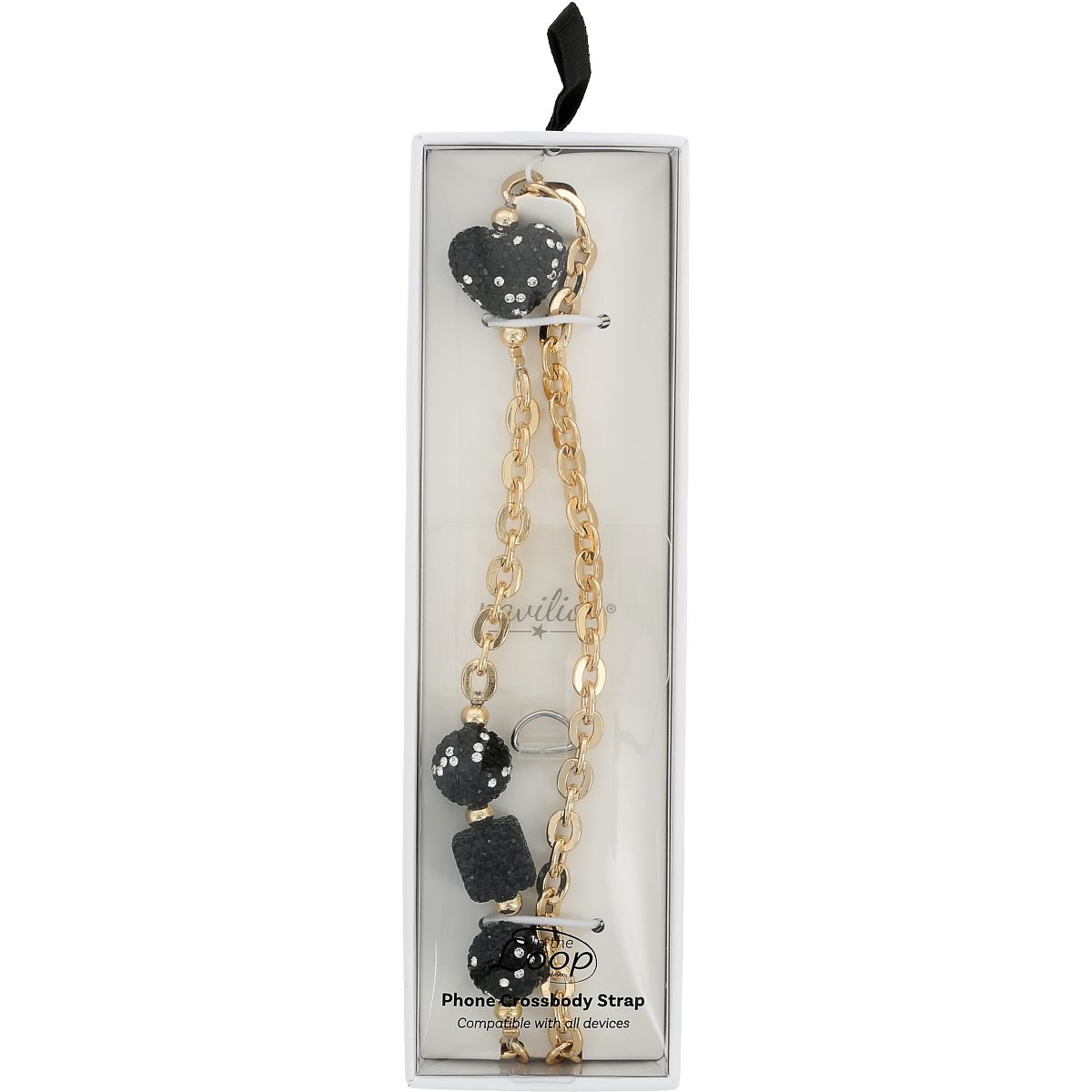 Pavilion Gift Company - Black Crystal Crossbody - Beaded Gold Phone Chain - Cell Phone Accessories