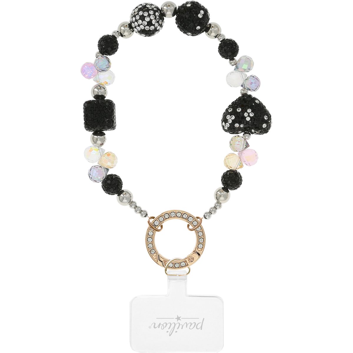 The Black Crystal Wristlet is designed to blend glamour and convenience seamlessly. Its beaded design, with alternating black and iridescent crystal-like beads, makes it a standout accessory that doubles as a practical phone holder. The gold metal clasp is gemmed for extra sparkle, while the clear acrylic tab ensures easy phone attachment. Whether you’re out running errands or attending an elegant event, this wristlet keeps your phone within reach and your hands free. It’s more than an accessory—it’s a style statement with functionality.