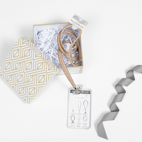 - IN-HOUSE DESIGN: The soft champagne color of the gemmed beads offers a sophisticated, neutral look that complements any style. The Pavilion-branded phone tab adds both security and elegance, making this lanyard a standout piece for those who appreciate subtle, luxurious accessories.