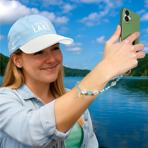 Channel peaceful lake days wherever you go with the Lake Beaded Wristlet from Pavilion’s In the Loop line. Designed with oceanic tones of blue and green and featuring charming nautical elements like a mini anchor and shell, this hands-free phone strap is perfect for those who feel most themselves near the water. The 11.75" loop fits comfortably around your wrist while the durable clasp and included phone tab ensure your phone stays secure. Whether you’re lakeside or dreaming of summer adventures, this wristlet brings a little piece of the water to your every day.