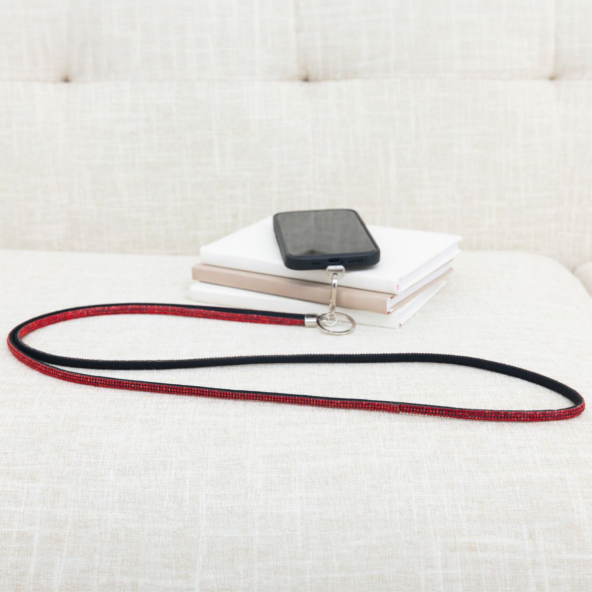 - PREMIUM QUALITY: Made with soft gemmed beads and durable metal hardware, this red crossbody phone lanyard combines bold style with everyday functionality. The sturdy nylon phone tab ensures that your phone stays secure, while the 56" length provides a comfortable fit for hands-free wear. Its vibrant red color makes it a standout accessory that is both fashionable and practical.