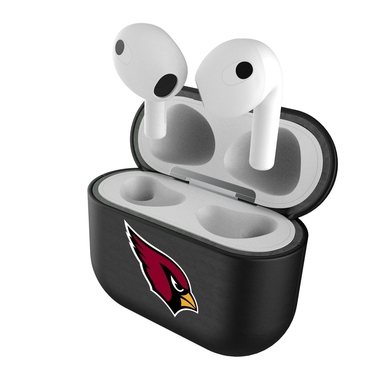 Give your AirPods a safe and stylish upgrade with this officially licensed, high quality, black leatherette AirPod case cover with full color print. This case is all about merging protection with that proud fan feeling. Case has peek hole to see charging light. Designed and decorated by Keyscaper in Tualatin, Oregon, USA.