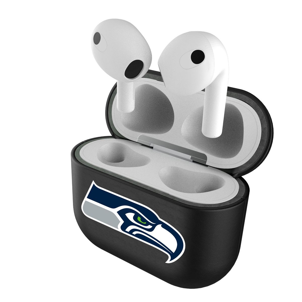 Give your AirPods a safe and stylish upgrade with this officially licensed, high quality, black leatherette AirPod case cover with full color print. This case is all about merging protection with that proud fan feeling. Case has peek hole to see charging light. Designed and decorated by Keyscaper in Tualatin, Oregon, USA.