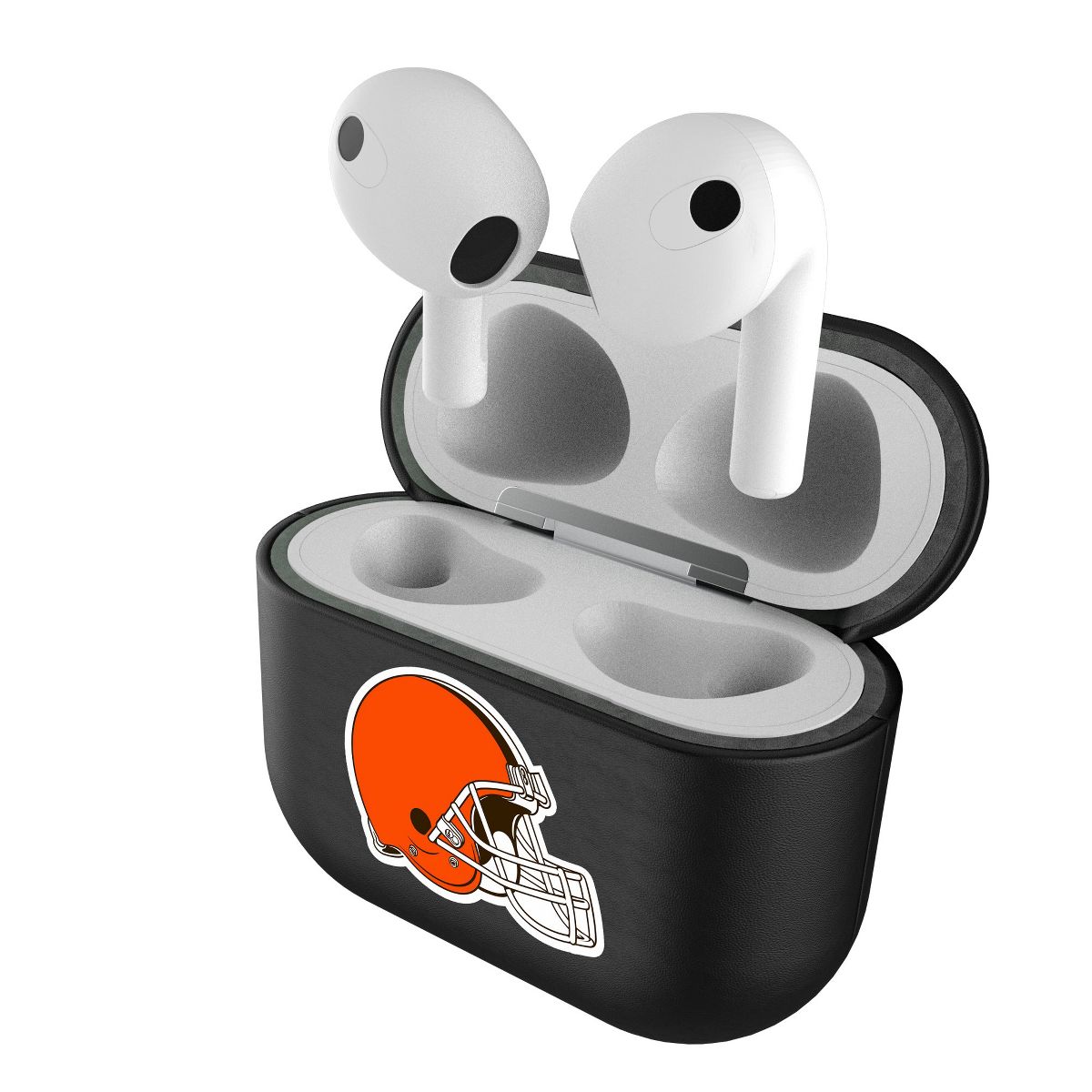 Give your AirPods a safe and stylish upgrade with this officially licensed, high quality, black leatherette AirPod case cover with full color print. This case is all about merging protection with that proud fan feeling. Case has peek hole to see charging light. Designed and decorated by Keyscaper in Tualatin, Oregon, USA.