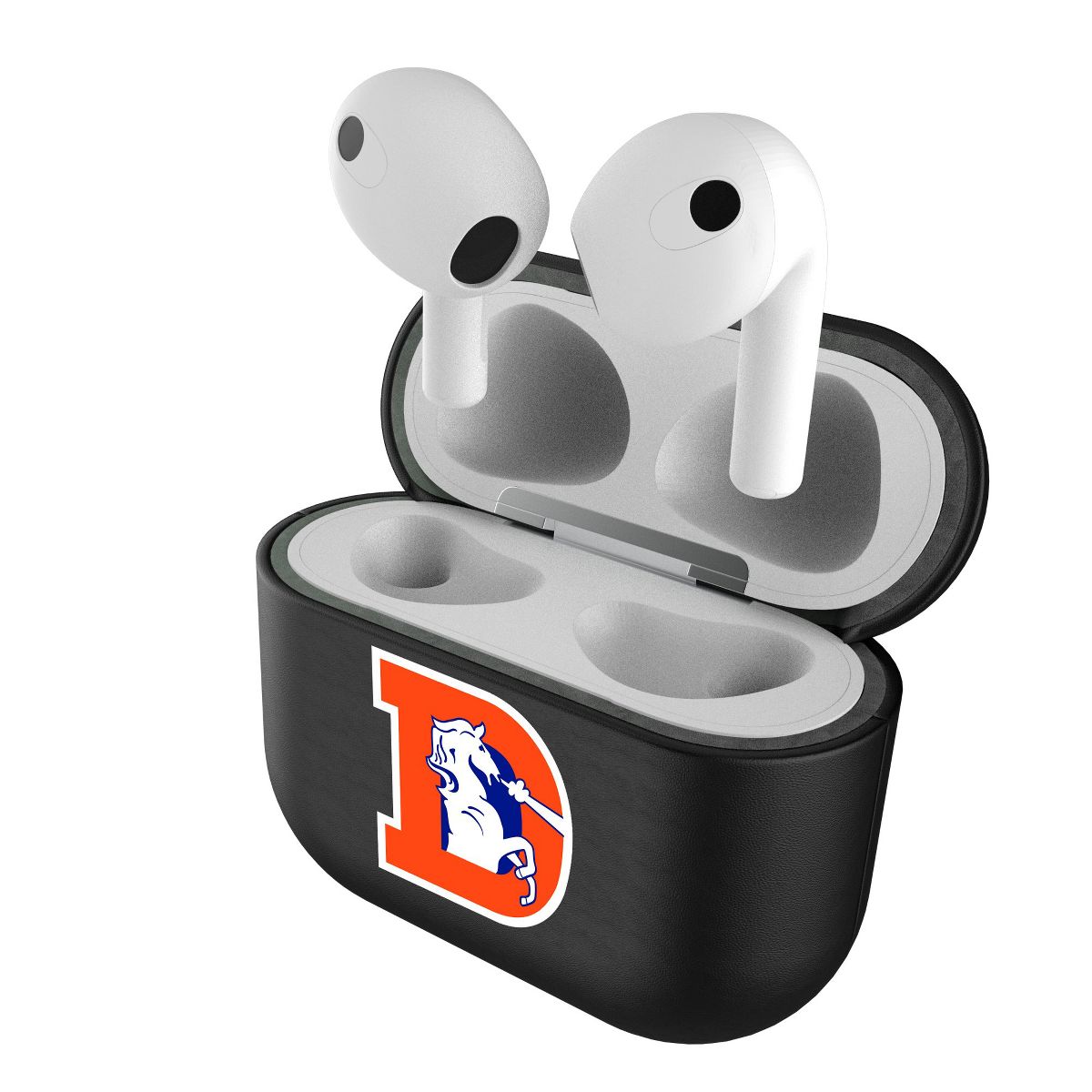 Give your AirPods a safe and stylish upgrade with this officially licensed, high quality, black leatherette AirPod case cover with full color print. This case is all about merging protection with that proud fan feeling. Case has peek hole to see charging light. Designed and decorated by Keyscaper in Tualatin, Oregon, USA.