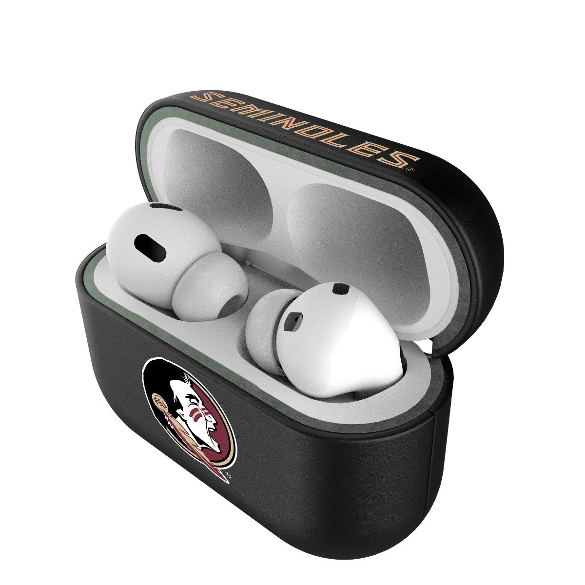 Give your AirPods a safe and stylish upgrade with this officially licensed, high quality, black leatherette AirPod case cover with full color print. This case is all about merging protection with that proud fan feeling. Case has peek hole to see charging light. Designed and decorated by Keyscaper in Tualatin, Oregon, USA.