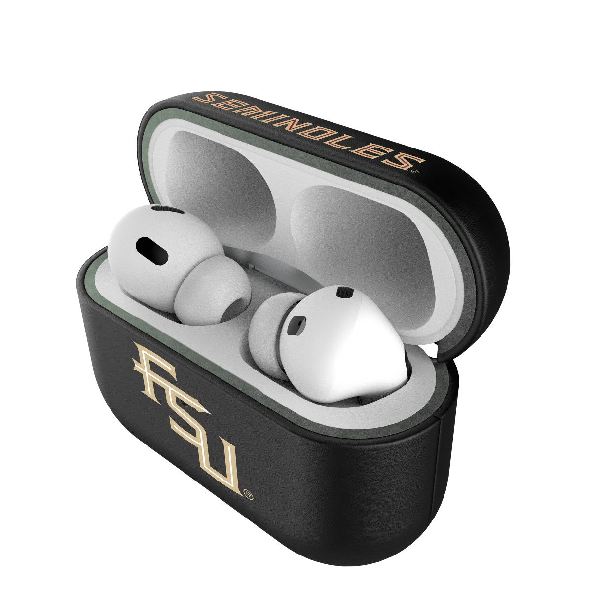 Give your AirPods a safe and stylish upgrade with this officially licensed, high quality, black leatherette AirPod case cover with full color print. This case is all about merging protection with that proud fan feeling. Case has peek hole to see charging light. Designed and decorated by Keyscaper in Tualatin, Oregon, USA.