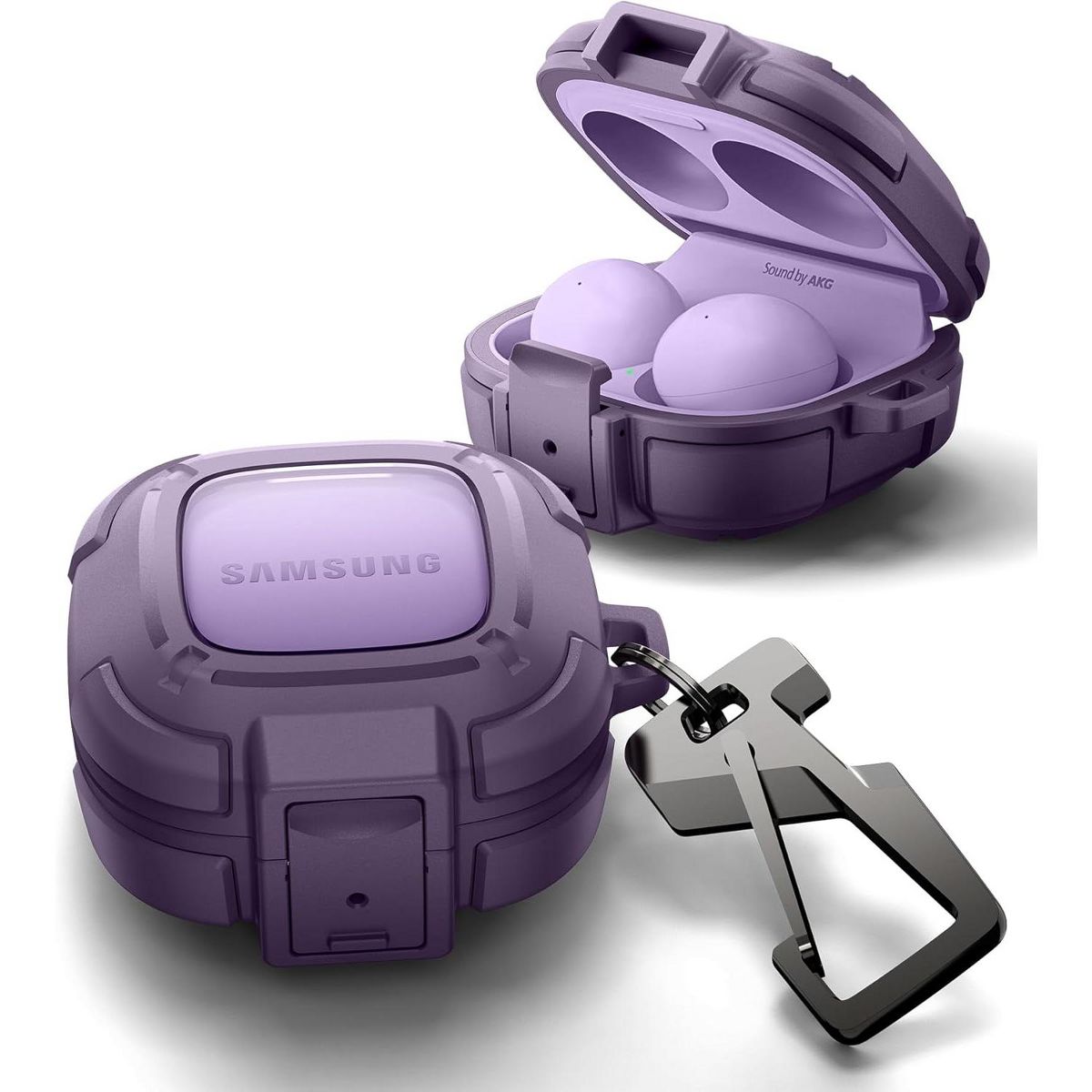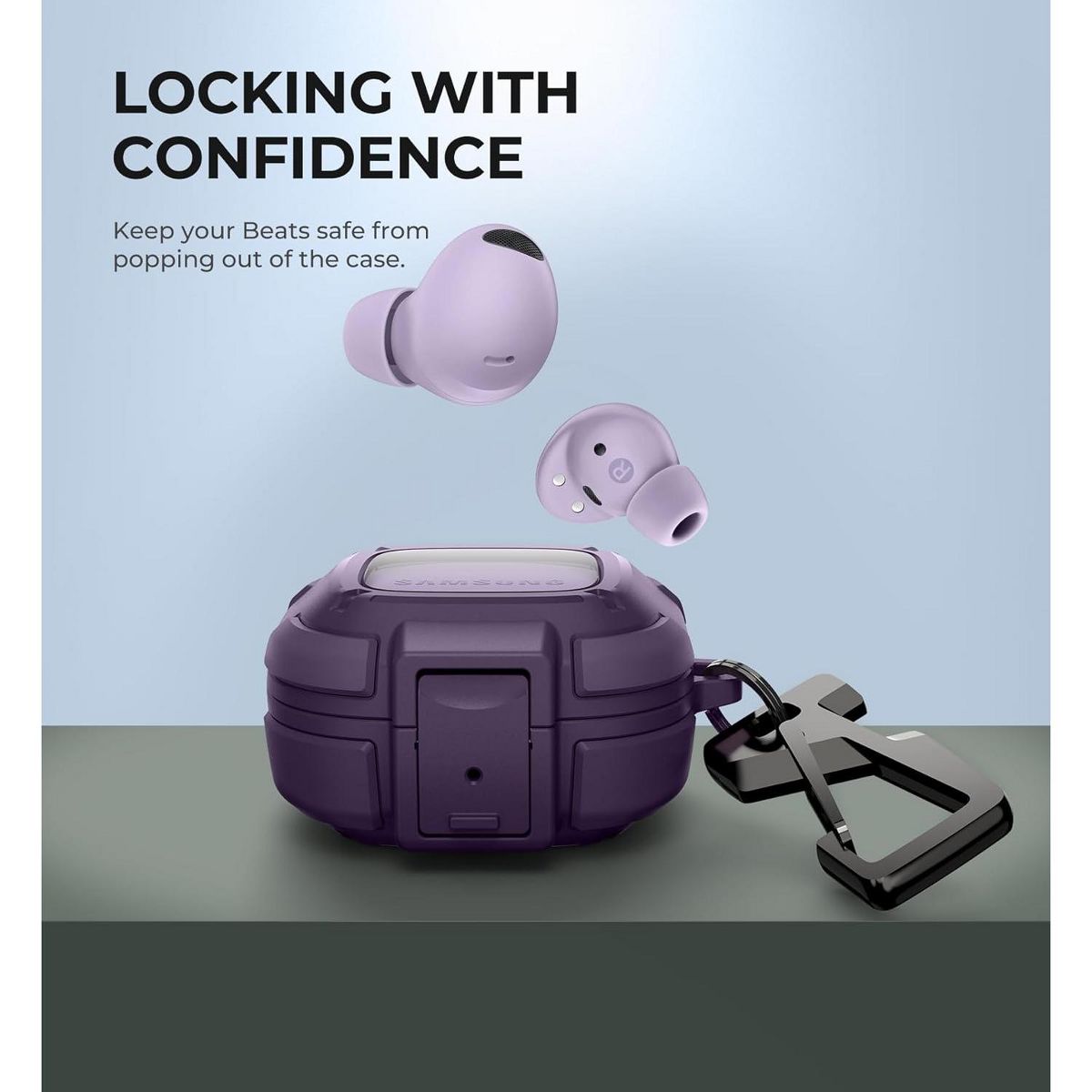Dexnor Rugged Bumper Case for Samsung Galaxy Buds with Secure Lock, Shockproof Cover and Carabiner