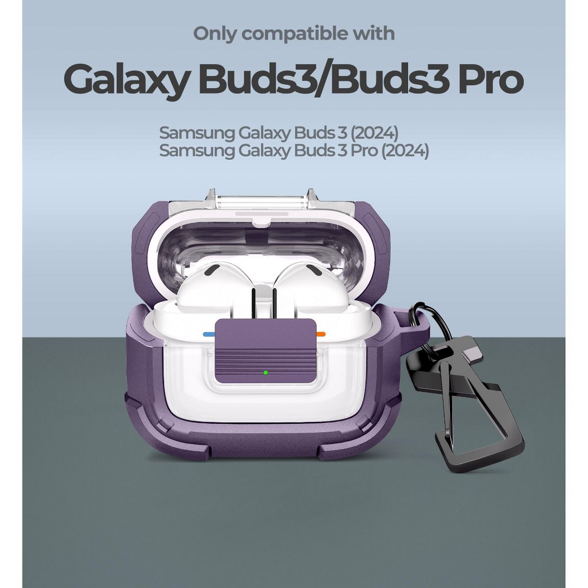 Dexnor Rugged Bumper Case for Samsung Galaxy Buds3 Pro and Buds3 (2024) Cases with Secure Lock, Clear Cover with Carabiner & Keyring Black