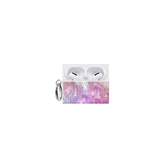 Flaunt Square AirPods Pro (1st/2nd gen.) Case - Opal Shell with Silver Ring Clip