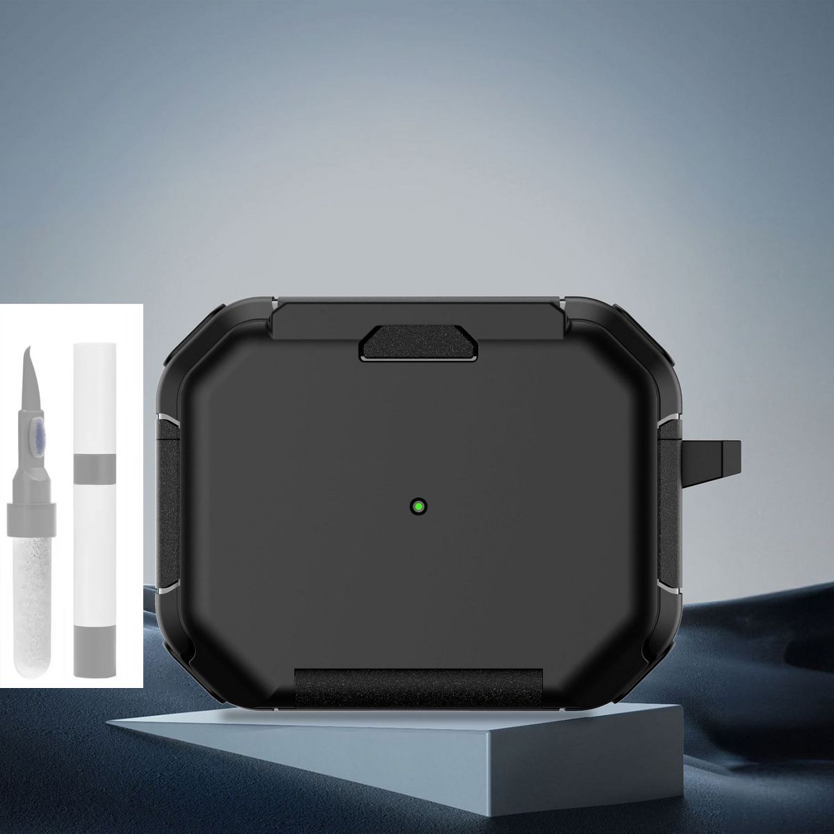 This AirPods Pro 2 Protective Case is a multi-functional accessory designed to safeguard and enhance your AirPods Pro 2, featuring a shockproof rugged build, a convenient carabiner for portability, and a built-in stand function for hands-free use. Crafted from high-quality, durable materials—typically a combination of impact-resistant TPU and hard PC—the case forms a protective barrier against drops, scratches, bumps, and daily wear, ensuring your AirPods Pro 2 stays in pristine condition, even in busy or outdoor environments.