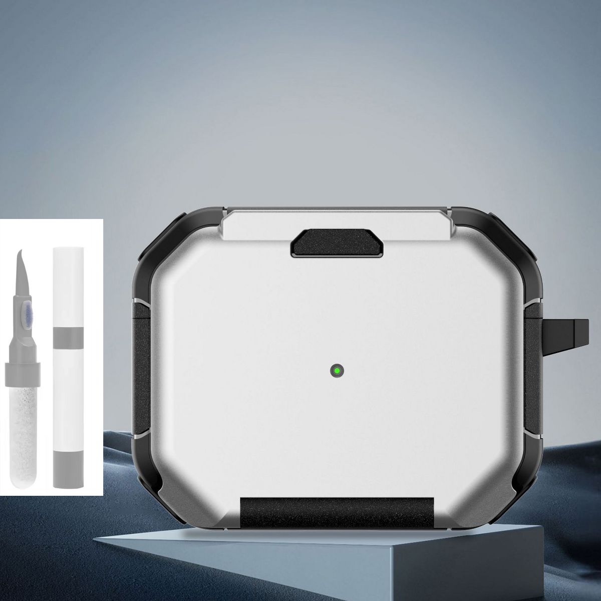 This AirPods Pro 2 Protective Case is a multi-functional accessory designed to safeguard and enhance your AirPods Pro 2, featuring a shockproof rugged build, a convenient carabiner for portability, and a built-in stand function for hands-free use. Crafted from high-quality, durable materials—typically a combination of impact-resistant TPU and hard PC—the case forms a protective barrier against drops, scratches, bumps, and daily wear, ensuring your AirPods Pro 2 stays in pristine condition, even in busy or outdoor environments.