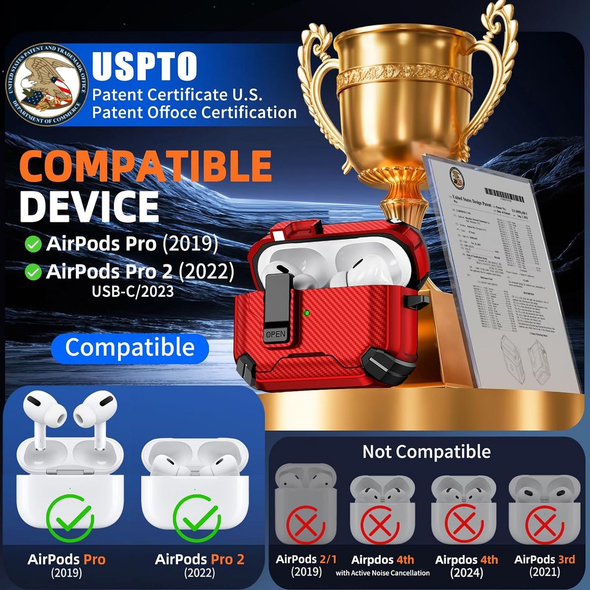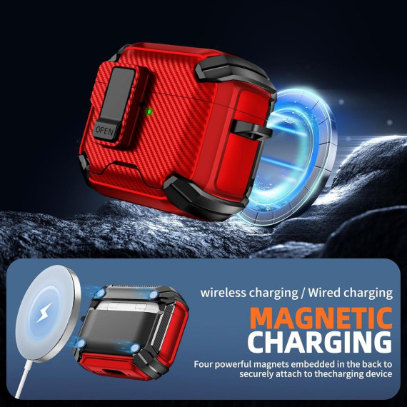 This AirPods Pro Case Cover is a multi-functional accessory designed exclusively for 2nd and 1st Generation AirPods Pro, blending security, convenience, and practicality to enhance your daily tech experience. At its core is a Magnetic Automatic Lock—a smart feature that uses strong, precise magnets to seal the case shut automatically when closed, preventing accidental openings and ensuring your AirPods Pro charging case stays securely inside. This magnetic design also fully supports Apple’s MagSafe technology: it aligns perfectly with MagSafe chargers for fast, stable wireless charging, and works seamlessly with MagSafe accessories like car mounts or wallet attachments—no need to remove the cover for charging or accessory use.