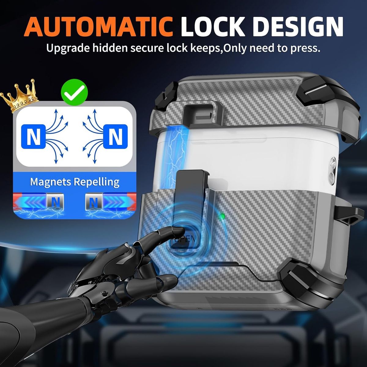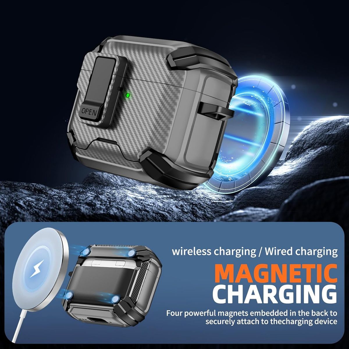 This AirPods Pro Case Cover is a multi-functional accessory designed exclusively for 2nd and 1st Generation AirPods Pro, blending security, convenience, and practicality to enhance your daily tech experience. At its core is a Magnetic Automatic Lock—a smart feature that uses strong, precise magnets to seal the case shut automatically when closed, preventing accidental openings and ensuring your AirPods Pro charging case stays securely inside. This magnetic design also fully supports Apple’s MagSafe technology: it aligns perfectly with MagSafe chargers for fast, stable wireless charging, and works seamlessly with MagSafe accessories like car mounts or wallet attachments—no need to remove the cover for charging or accessory use.