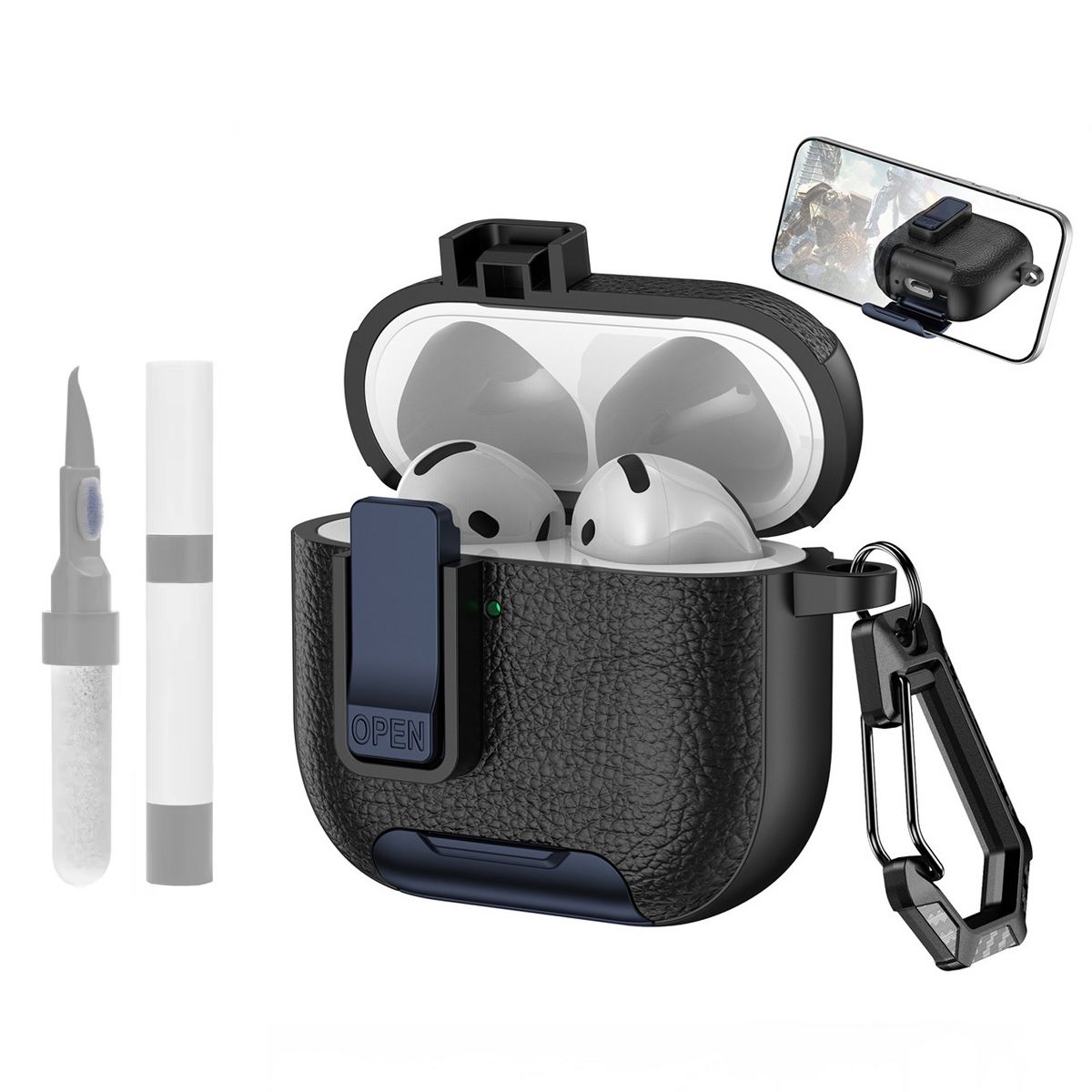 This AirPods Pro Lock Clip Leather Case is a versatile, durable accessory designed to protect and enhance the usability of both AirPods Pro 2nd Generation and 1st Generation—with a focus on rugged protection, multi-functionality, and premium style. Crafted from high-quality genuine or synthetic leather, the case offers a soft yet sturdy exterior that resists scratches, scuffs, and minor drops, while its precision-cut design ensures a snug fit for your AirPods Pro charging case—keeping it secure without adding unnecessary bulk.