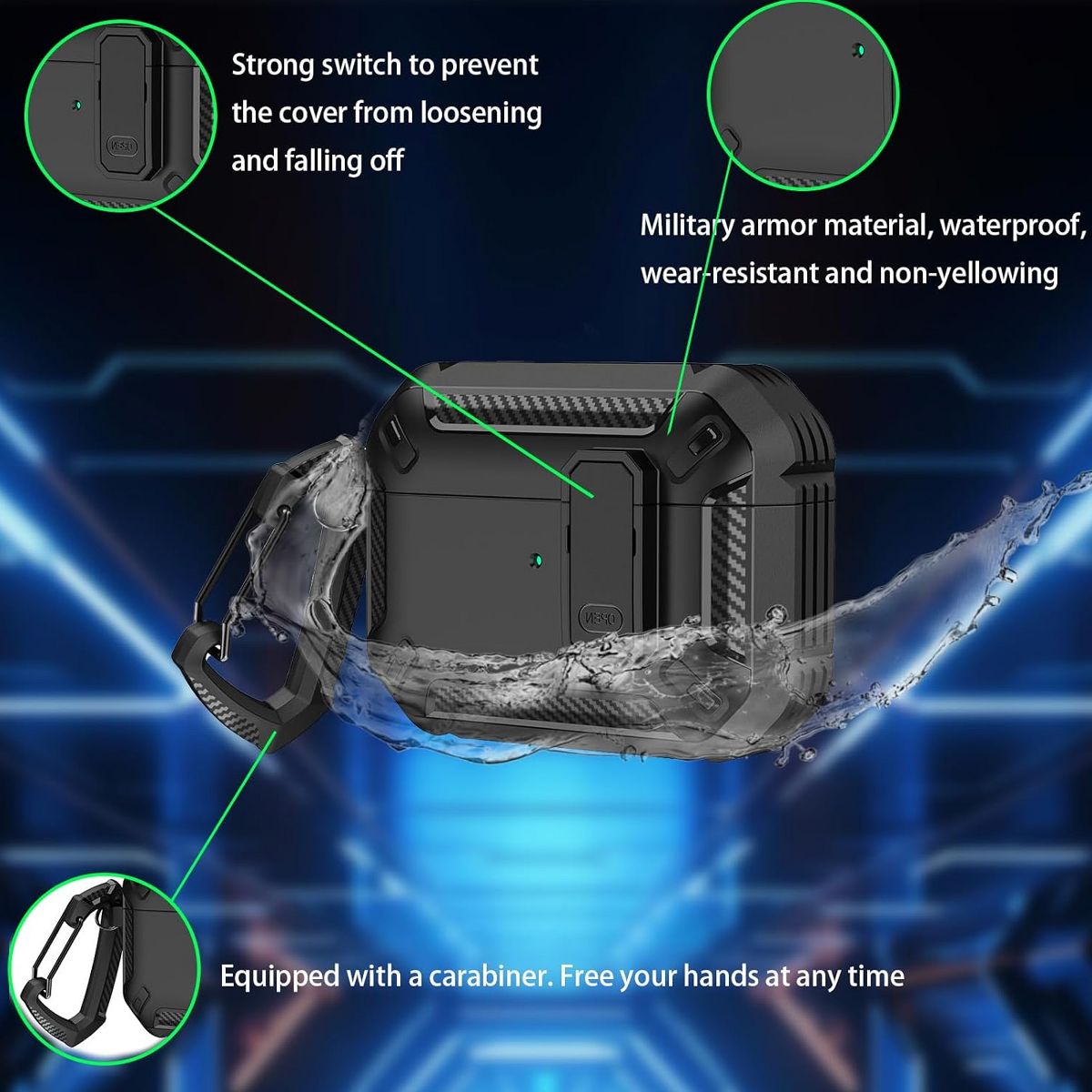 HTUTWOO AirPods Pro 3 Case, Full Drop Protector Cover with Carabiner and Cleaning Kit for Men Women (Black)
