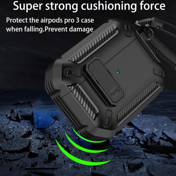 HTUTWOO AirPods Pro 3 Case, Full Drop Protector Cover with Carabiner and Cleaning Kit for Men Women (Black)