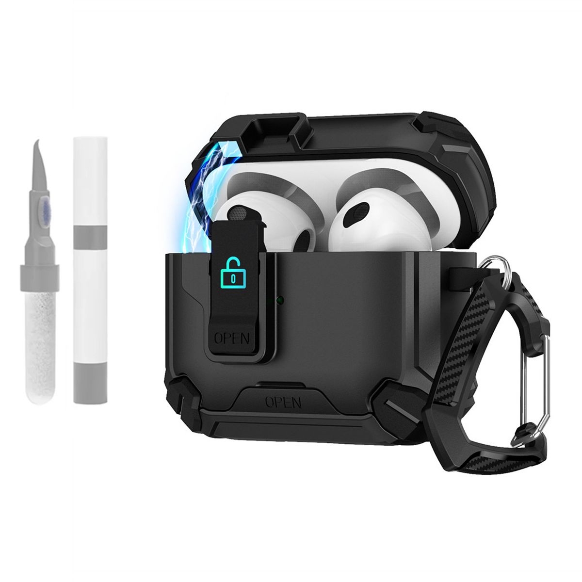 This AirPods Pro 3 Case is a all-in-one protective and functional accessory, featuring a shockproof full-body cover, wireless charging compatibility, a secure lock design, and a convenient built-in bracket—tailored to keep your AirPods Pro 3 safe while enhancing daily usability. Unlike basic cases that only shield the exterior or block charging, this design balances robust protection with practical features: it wraps every edge of your AirPods Pro 3 to fend off drops, scratches, and dust, while letting you charge wirelessly without removing the case. The added secure lock prevents accidental lid pops and the built-in bracket turns the case into a hands-free stand—perfect for video calls, listening to music, or watching content while your earbuds charge.