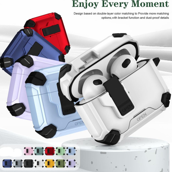 This AirPods Pro 3 Case is a all-in-one protective and functional accessory, featuring a shockproof full-body cover, wireless charging compatibility, a secure lock design, and a convenient built-in bracket—tailored to keep your AirPods Pro 3 safe while enhancing daily usability. Unlike basic cases that only shield the exterior or block charging, this design balances robust protection with practical features: it wraps every edge of your AirPods Pro 3 to fend off drops, scratches, and dust, while letting you charge wirelessly without removing the case. The added secure lock prevents accidental lid pops and the built-in bracket turns the case into a hands-free stand—perfect for video calls, listening to music, or watching content while your earbuds charge.