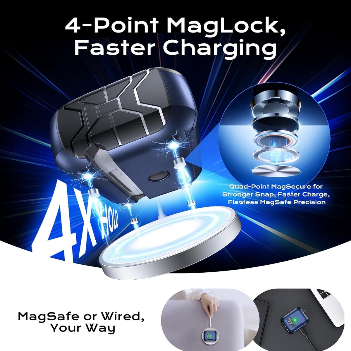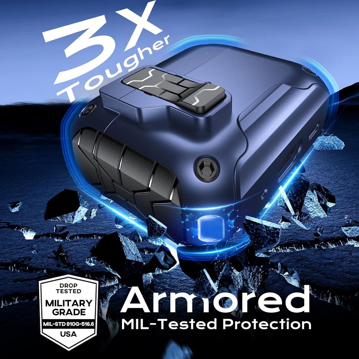 HTUTWOO Airpods Pro 3rd Automatic Opening Protective Case Full-Body Protective with Built-in Magnets and Carabiner, Black
