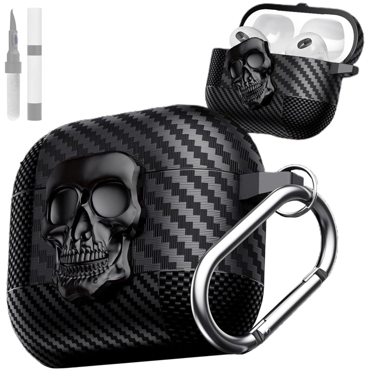 HTUTWOO Compatible with AirPods Pro 3rd Generation, Skull Pattern Protective Case, Full Body Shockproof with Keychain and Cleaning Kit (Black)