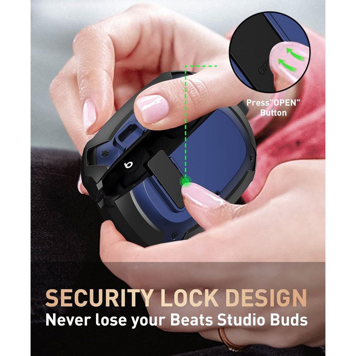 Made of sturdy TPU hard shell, perfect to protect your new beat studio buds from drops, scratches and shocks. Anti-Lost detachable Carabiner keeps your beat studio buds from getting lost, clip to your belt loop or backpack and go.