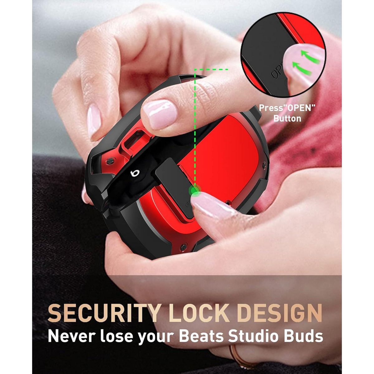 HTUTWOO Compatible With Beats Studio Buds/Buds+ Case Cover 2021/2023, Secure Lock Cool Beats Studio Buds Plus Protective Shell With Keychain,Black